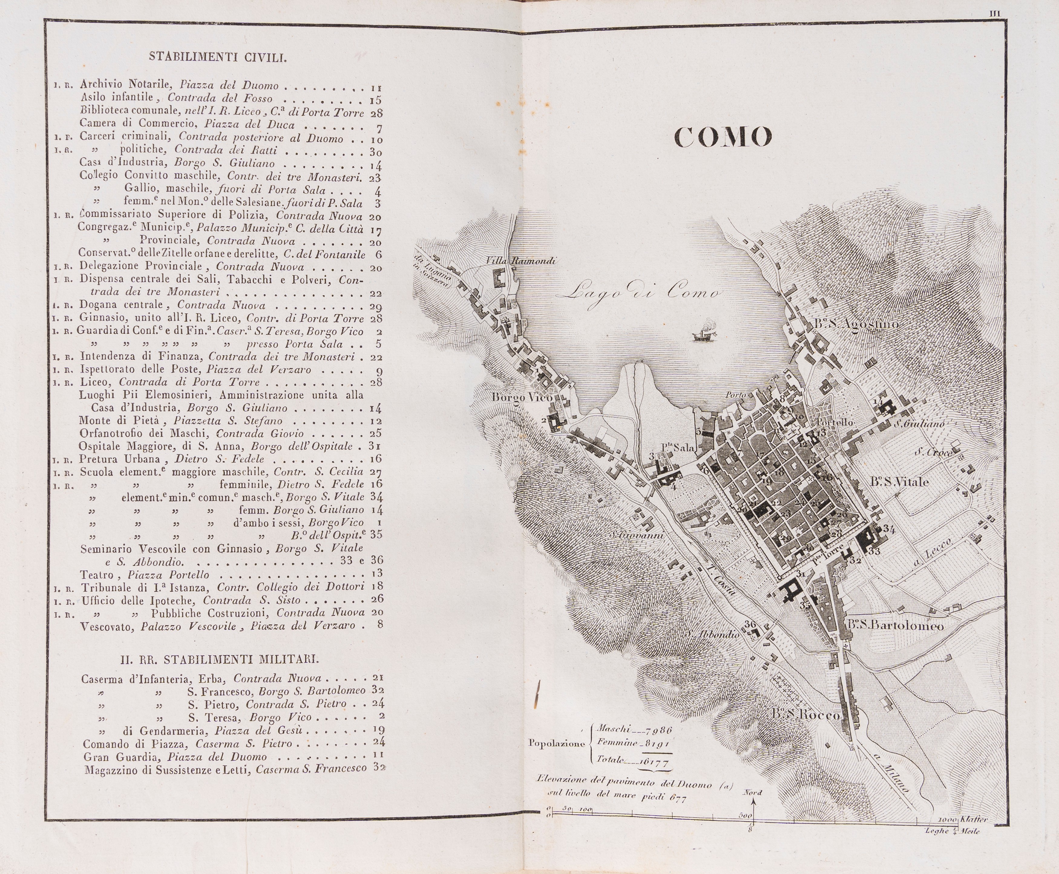 Raro atlante tascabile in prima edizione. Le carte topografiche descrivono le città di Sondrio, Como, Monza, Milano, Pavia, Lodi, Bergamo, Brescia, Cremona, Mantova, Verona, Vicenza, Padova, Venezia, Treviso, Udine, Rovigo, Belluno.