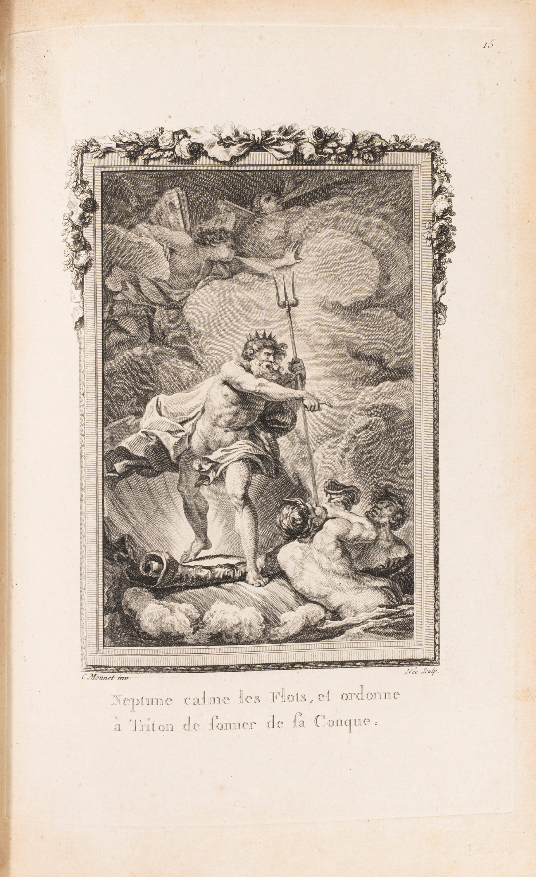 Paris, Chez Basan and Le Mire, 1767-1771. In 4°, 253 x 162 mm. Frontespizio inciso, dedica incisa su due fogli, "Explication des planches" 20 pp. in fine volume, 140 belle tavole di Eisen, Boucher, Gravelot, Moreau, Leprince, Monnet, Parizeau et Saint-Gois, incise da Baquoy, Basan, Binet, Duclos, de Ghendt, Helman, de Launay, Legrand, Lemire, Leroy, Leveau, de Longueil, Masquelier, Massard, Miger, Nee, Ponce, Rousseau et Saint-Aubin, una tavola finale con la "Fin des Estampes" e la data 1771. Splendida legatura coeva in piena pelle marmorizzata, cornice a triplice filetto dorata ai piatti, dorso a cinque nervi con comparti decorati in oro e titolo su tassello di pelle rosso "Estampes des Metamorph.", lievi abrasioni e restauri al dorso. Firma di possesso al primo foglio di guardia. § Les Metamorphoses d'Ovide. Paris, Prault, 1767-1771. In 4°, 248 x 185 mm. 4 voll. Vignette ai frontespizi, finalini, illustrazioni ad apertura dei diversi libri, lievi arrossature, bella legatura coeva in pelle marmorizzata con dorso a 5 nervi che suddividono comparti decorati in oro e titoli su tasselli di pelle rossa, tagli rossi. Ex libris "Conte Cesare S. Martino della Motta" ai contropiatti. L'edizione nasce senza illustrazioni, il volume precedentemente descritto è appunto quello che avrebbe illustrato la presente opera.