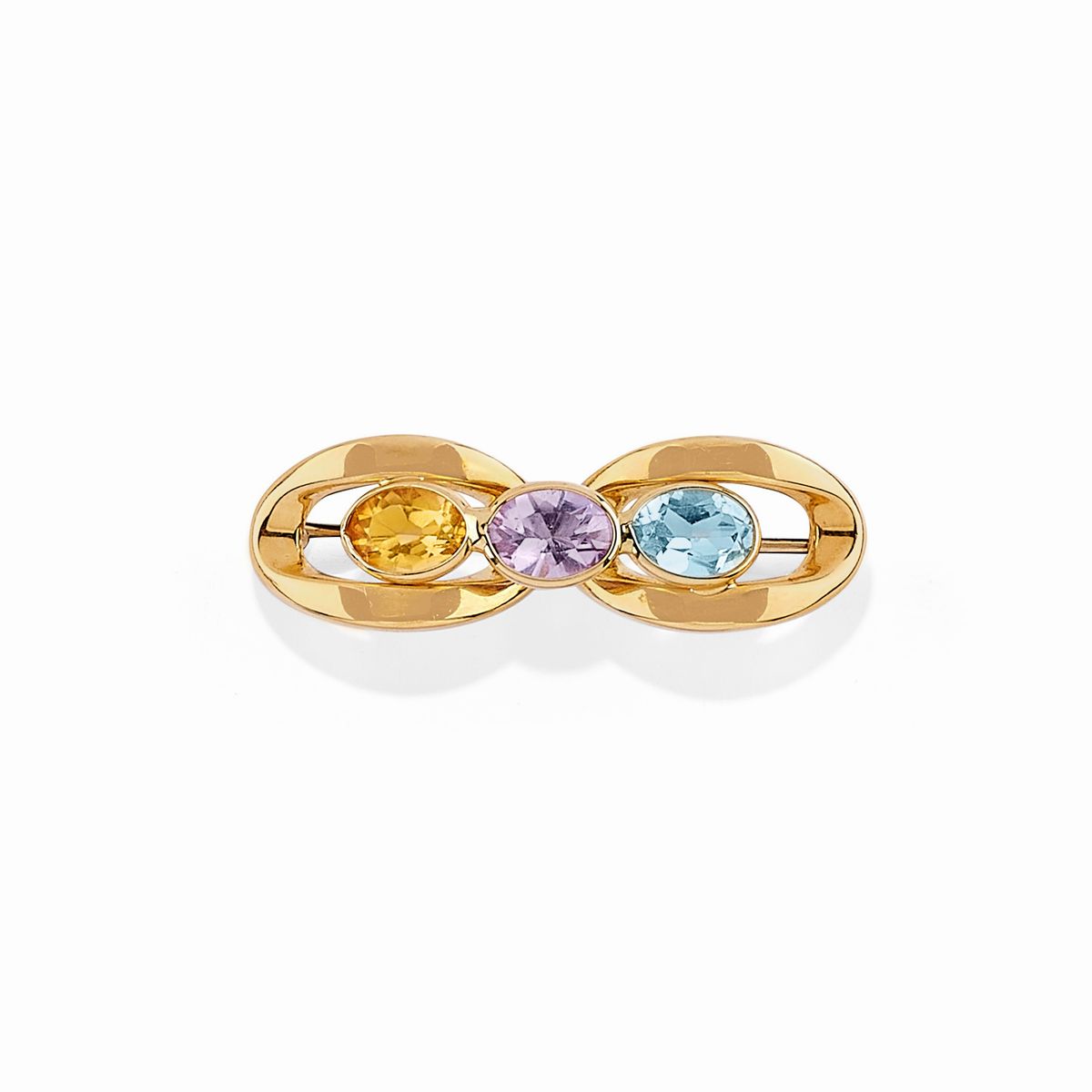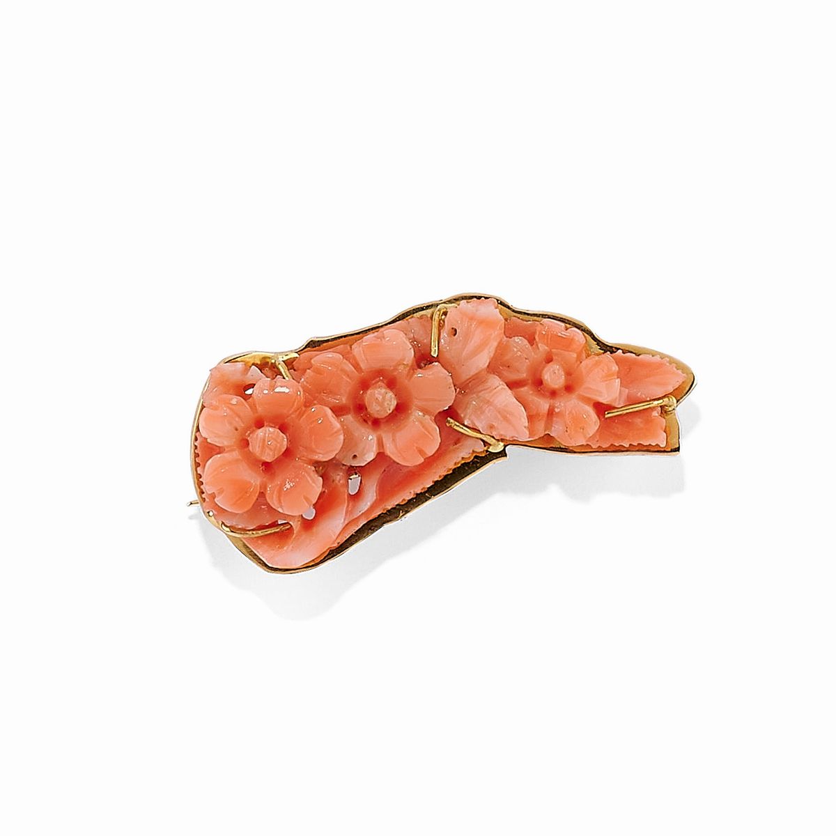 in oro bicolore 18K, una con corallo scolpito a fiore, una con al centro pietre colorate taglio ovale, una con al centro motivo a nodo e una in diamanti taglio brillante e huit-huit.