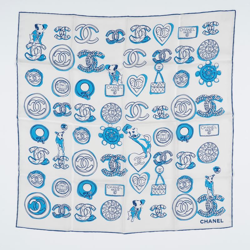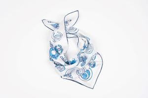 in seta stampa simboli color blu su fondo color bianco, cm 60 x 60