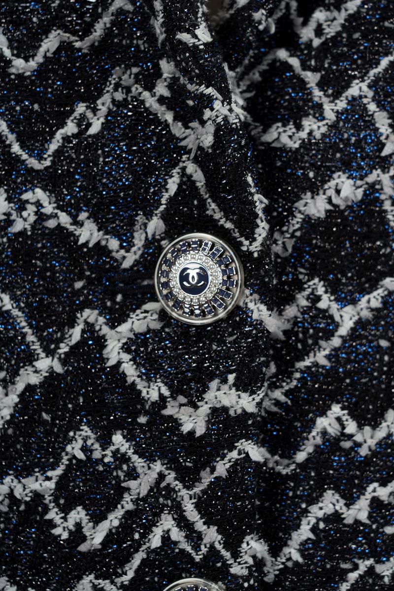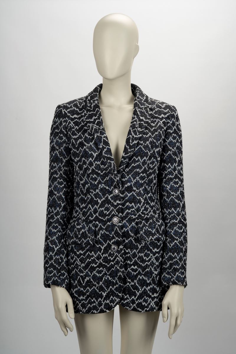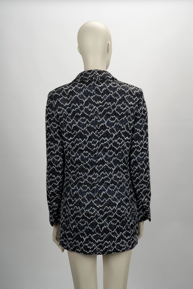 in misto lana e cotone bouclé color nero e bianco, bottoni gioiello logati, sfoderata, taglia 36, con custodia
