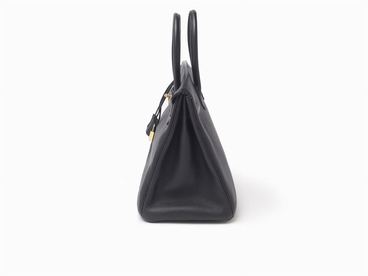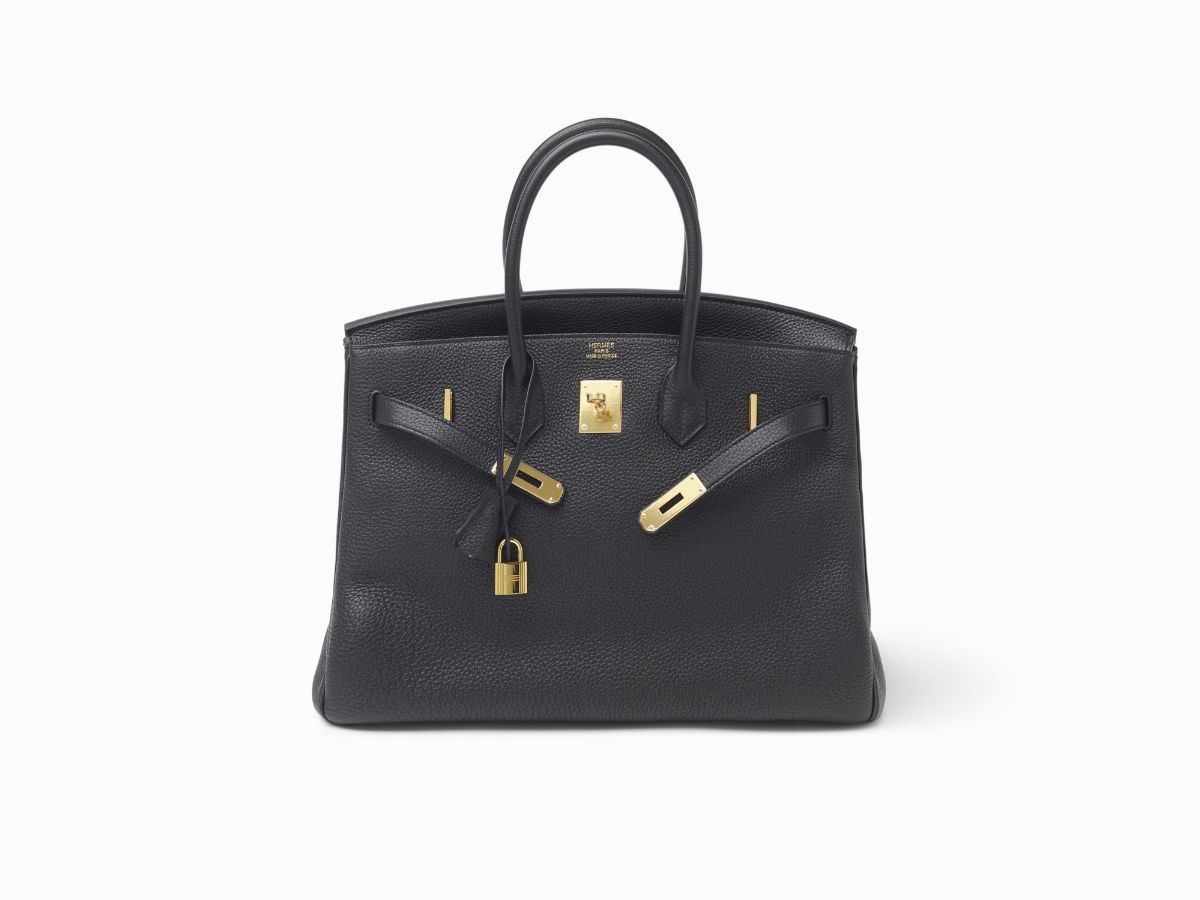 in pelle togo color nero, dettagli in metallo dorato,con sacchetto, scatola e pellicole protettive (mai usata), 2011Stima