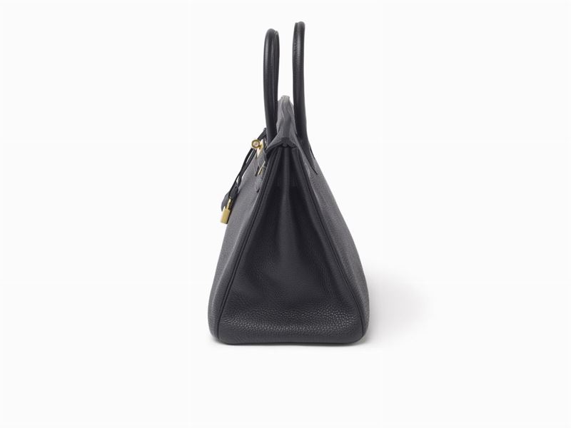in pelle togo color nero, dettagli in metallo dorato,con sacchetto, scatola e pellicole protettive (mai usata), 2011Stima