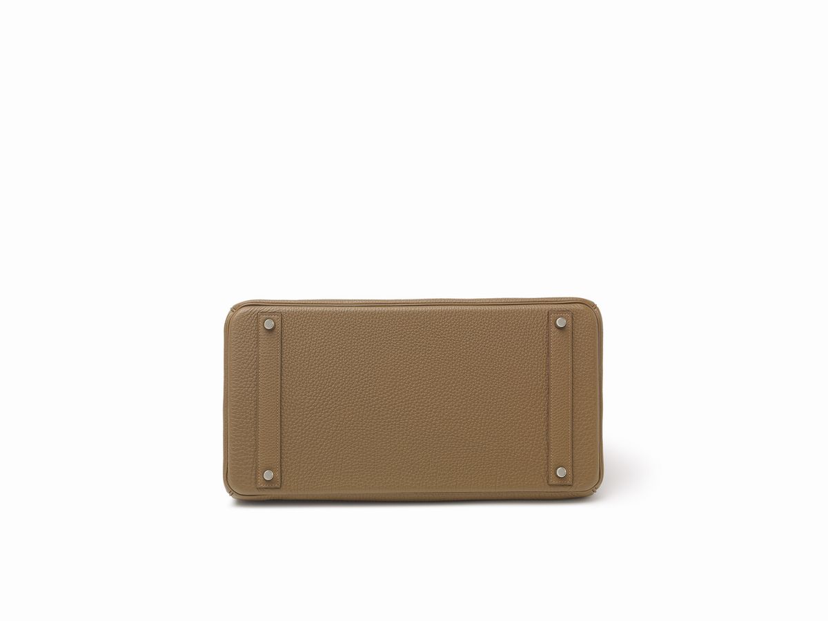 in pelle togo color castagna, dettagli in palladio, con sacchetto, scatola e pellicole protettive (mai usata), 2011Stima