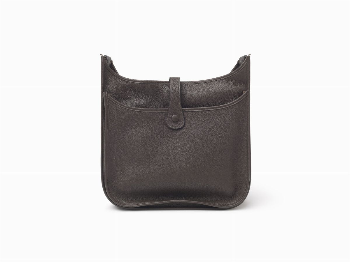 in pelle taurillon clemence color ebano, dettagli in palladio,con sacchetto, scatola e pellicole protettive (mai usata), 2012Stima