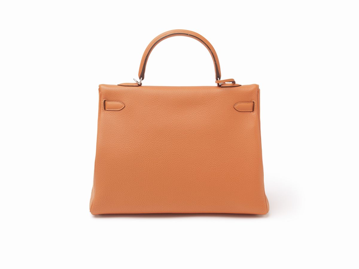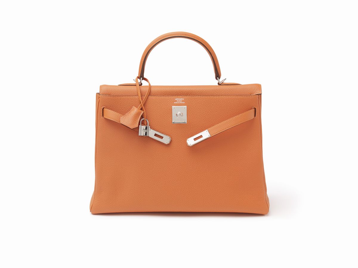 in pelle togo color arancione, dettagli in metallo dorato,con sacchetto, scatola e pellicole protettive (mai usata), 2011