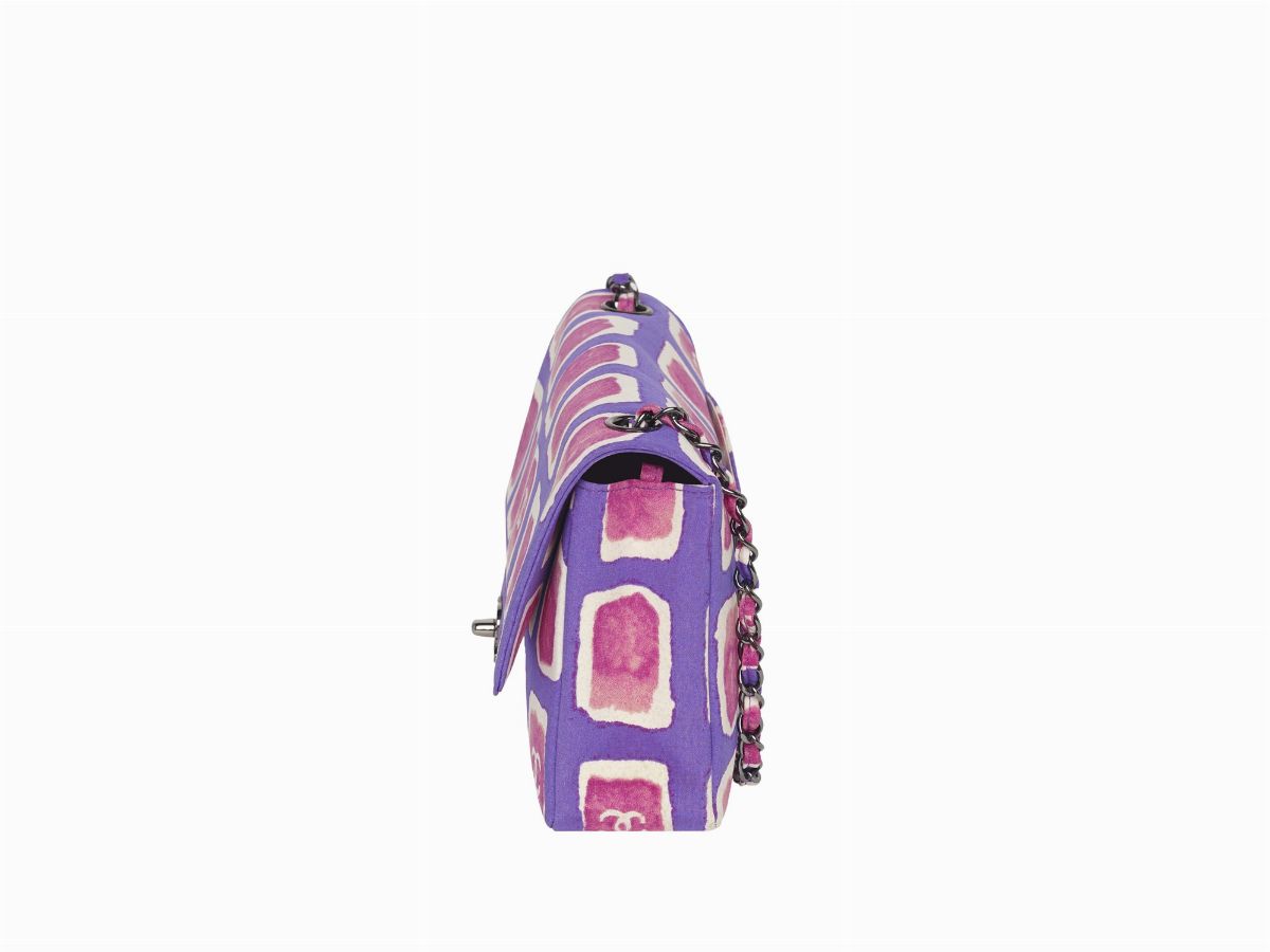 con tracolla a catena, fantasia color viola, fucsia e panna, cm 25 (lievissimi difetti)
