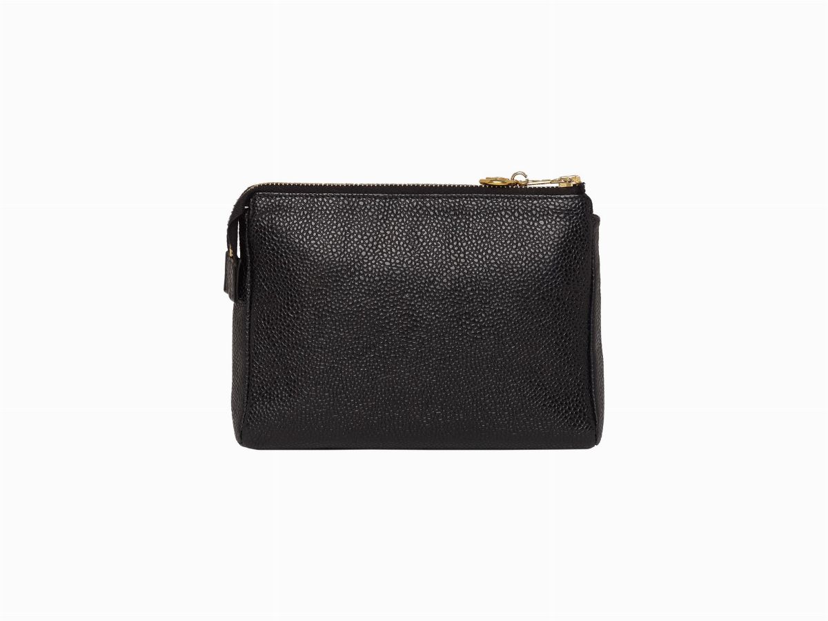 in pelle caviar color nero, dettagli in metallo dorato, cm 16Stima