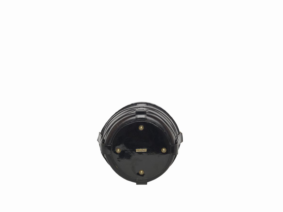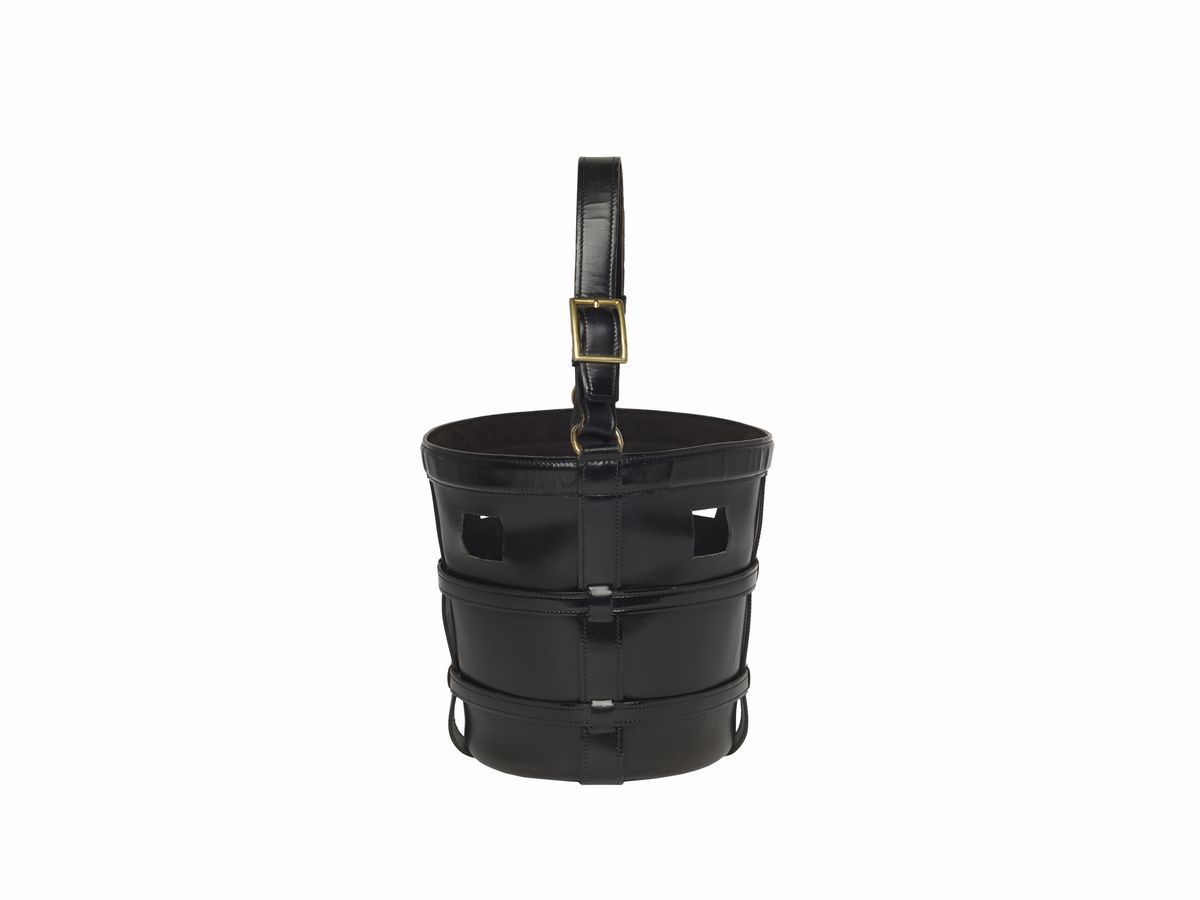 a secchiello in pelle e vernice color nero, cm 20 x 21, interno in camoscio (lievi difetti)