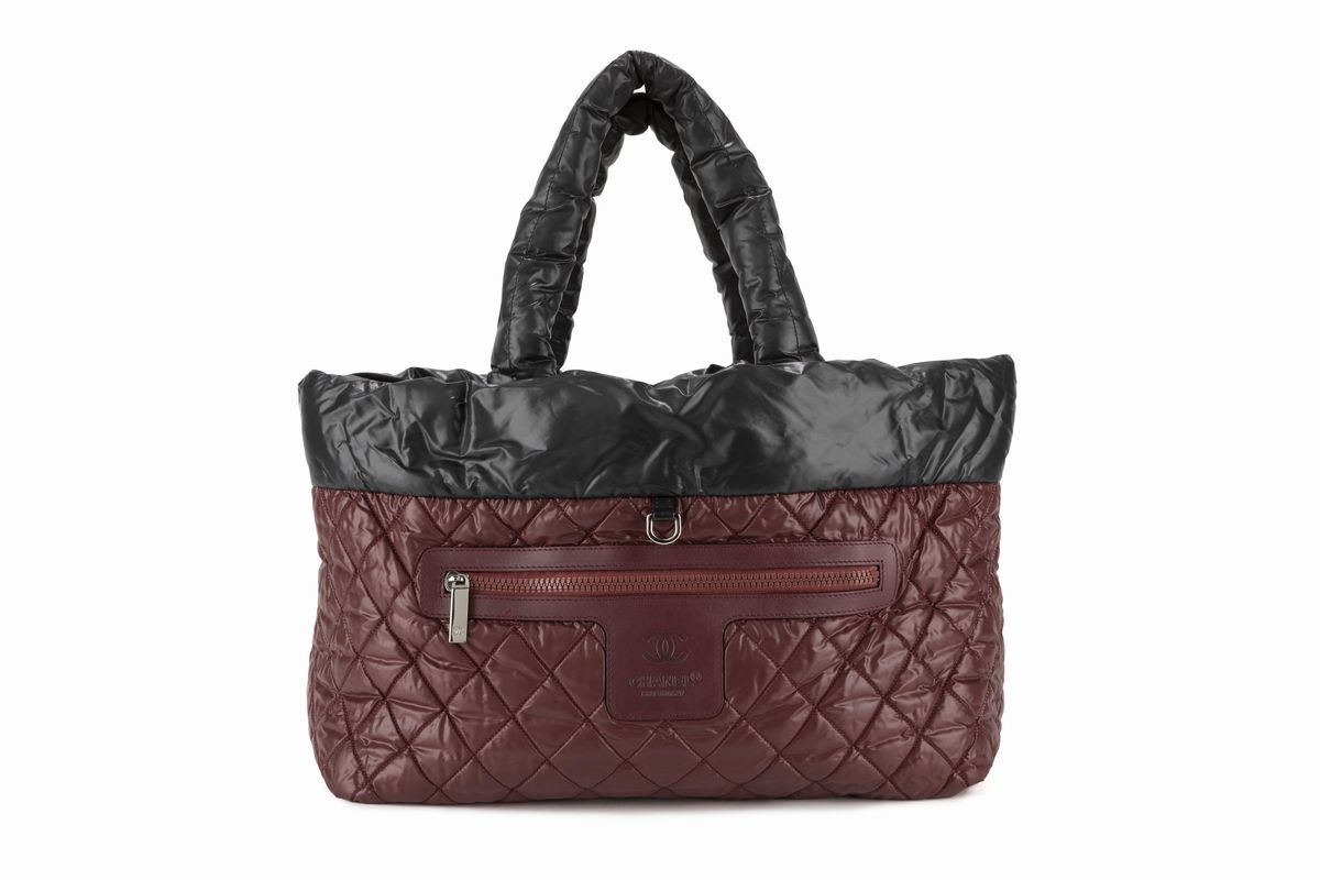 in tessuto tecnico imbottito double face, con doppi manici color nero, interno color bordeaux matelassé, cm 40.Stima