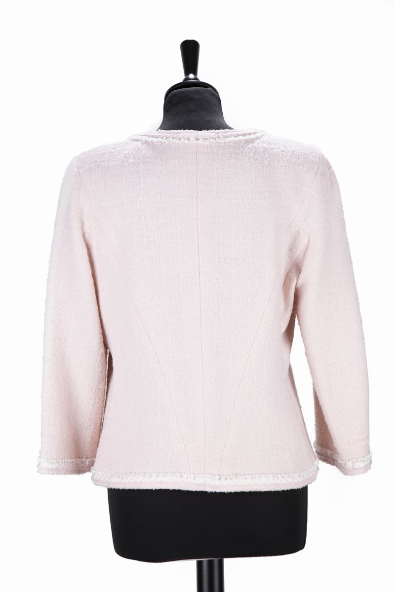 in misto lana color rosa con profili, bottoni gioiello, fodera in seta, tg 42.Stima
