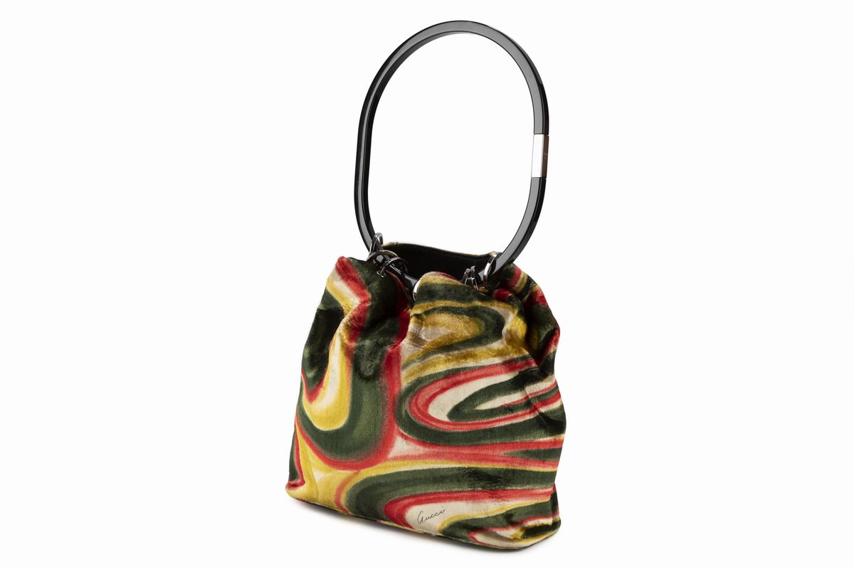 in velluto di seta melange colori vari, manico ad anello, cm 24, edizione speciale Tom Ford, A/I 1999, con sacchetto.