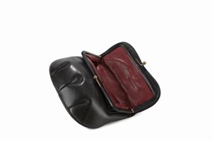 in pelle color nero, interno in pelle color bordeaux, cm 15, anni '70 (lievi difetti).Stima