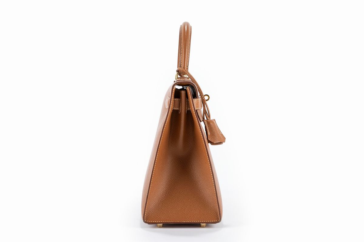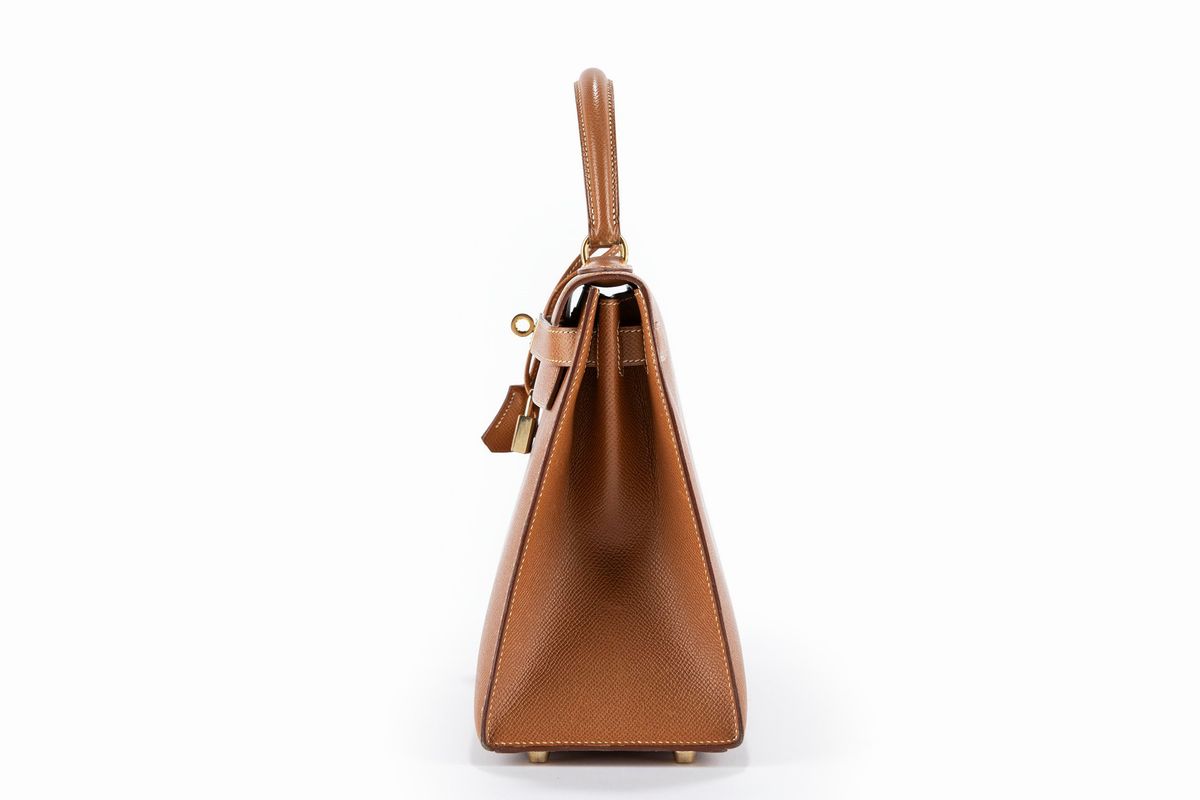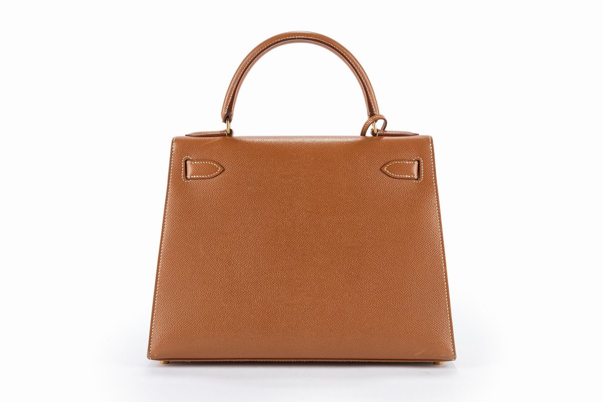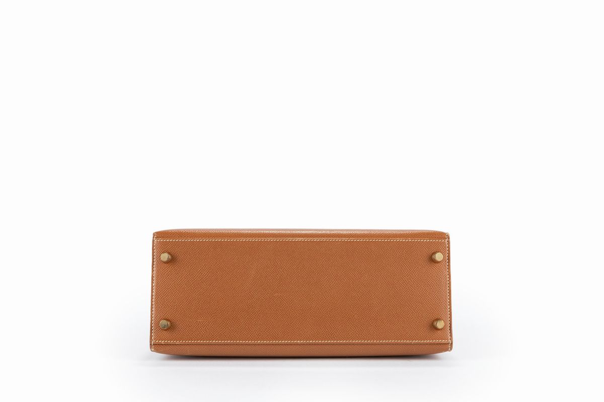 in pelle epson color gold, dettagli in metallo dorato, con tracolla e sacchetto (lievi difetti).Base d'asta