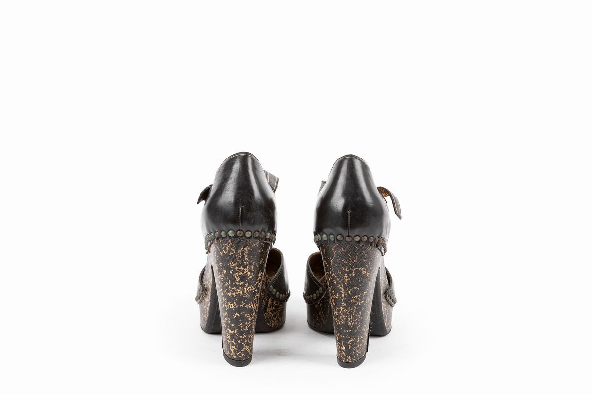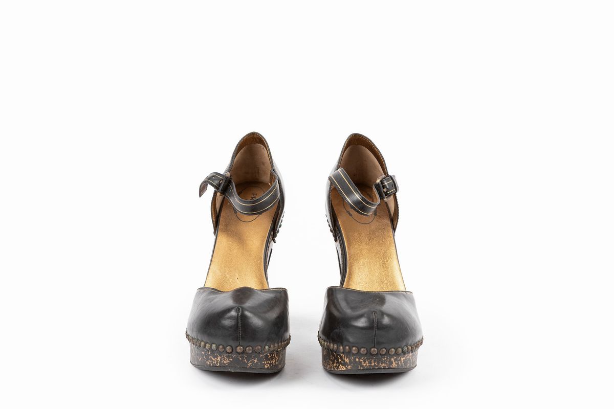 in pelle color nero, cinturino alla caviglia, tacco cm 12, misura 38,5 (difetti)