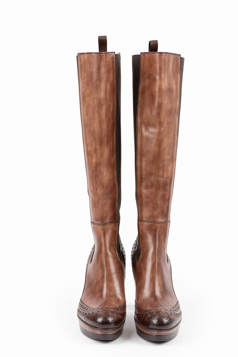 stivali in pelle color marrone, misura 38, tacco cm 10 (nuovi e mai usati)