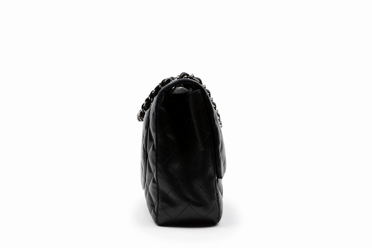 in pelle matelassé color nero, tracolla a catena, cm 30, con sacchetto (difetti)Base d'asta