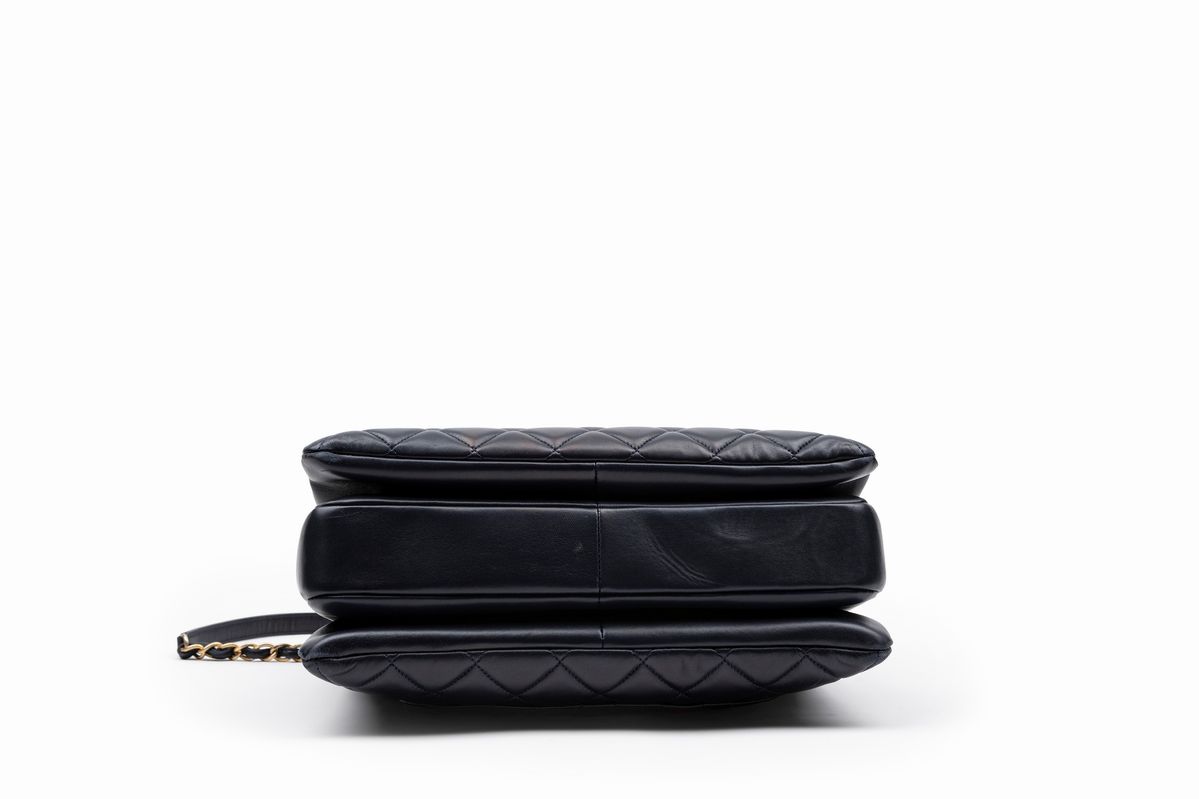 in pelle matelassé color blu, con tracolla staccabile, dettagli in metallo dorato, cm 33 (lievi difetti)Base d'asta
