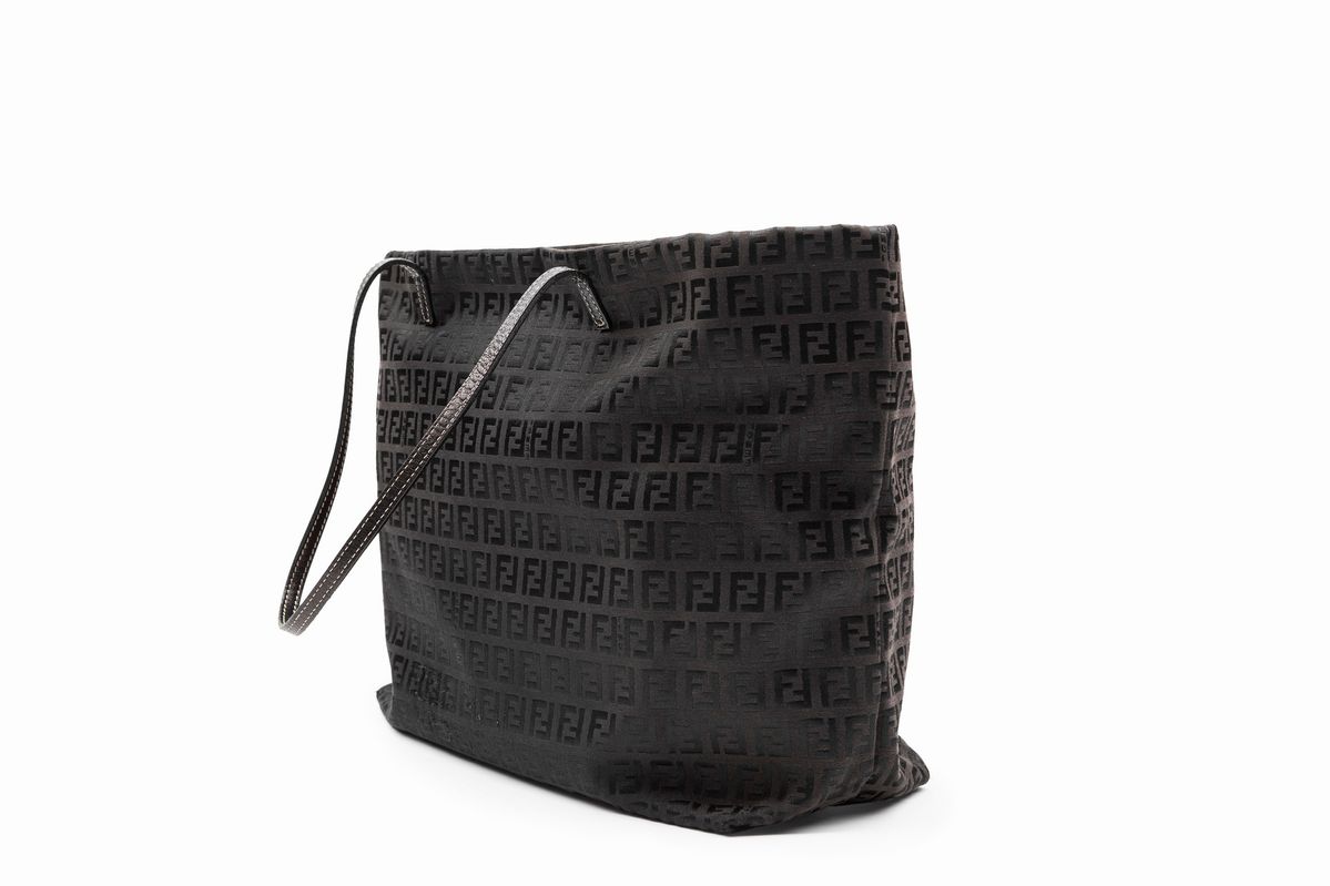 in tessuto logato color nero, manici in pelle, cm 32, con sacchetto (lievi difetti)Base d'asta