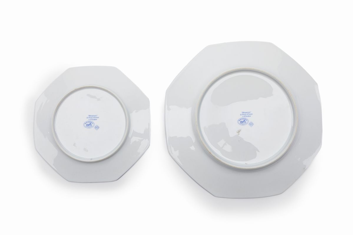 collezione Marqueterie de Pierre d'Orient et d'Occident in porcellana color bianco, dm cm 26 e dm cm 19,5Base d'asta