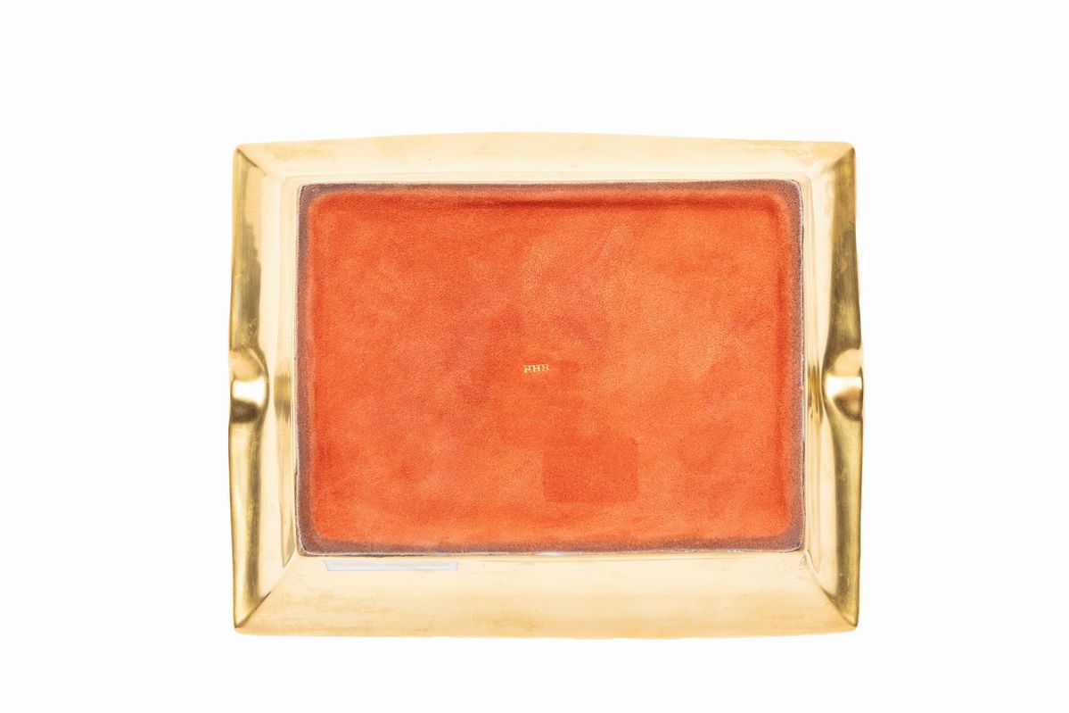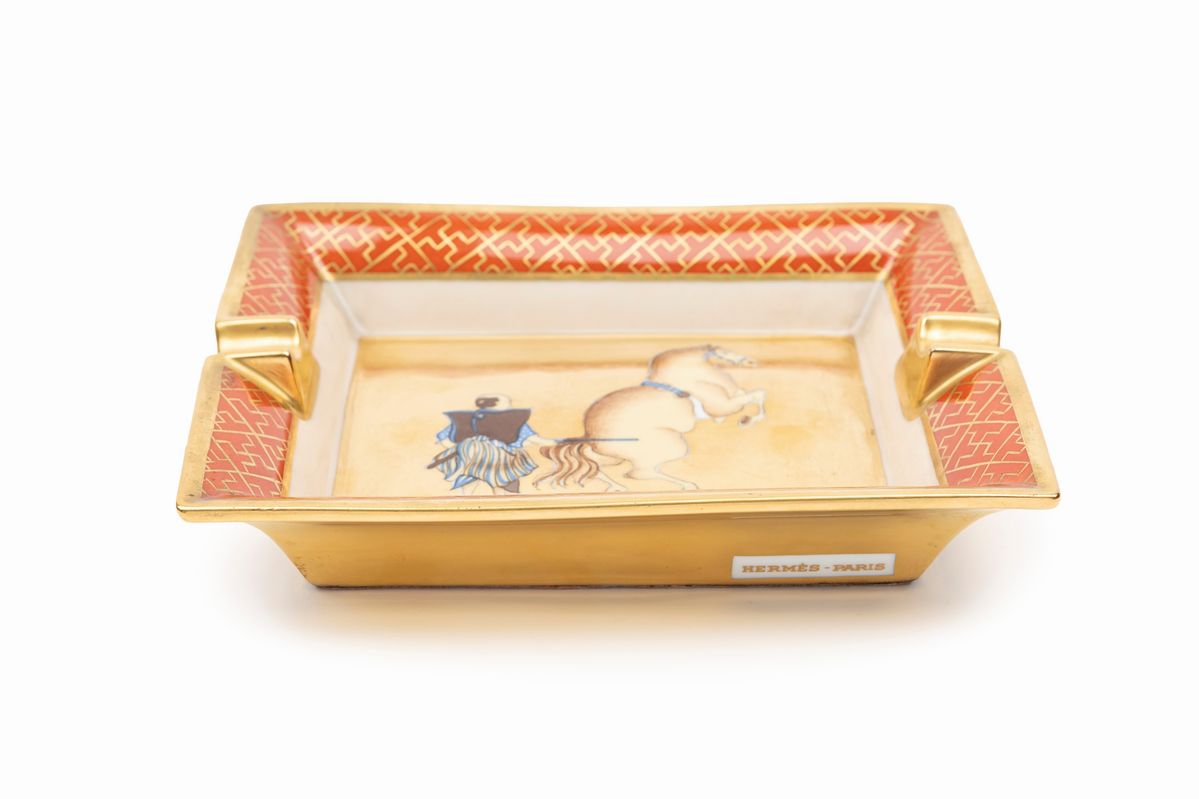 in porcellana, decoro Samurai Horse, bordo color corallo e oro, cm 19 x 16Base d'asta