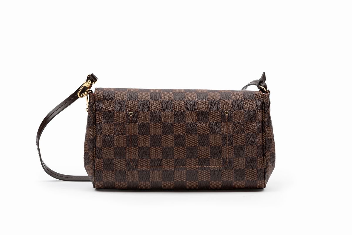 in pelle Damier Ebène con doppia tracolla in pelle e metallo dorato, cm 24, con sacchetto e scatola (lievissimi difetti)