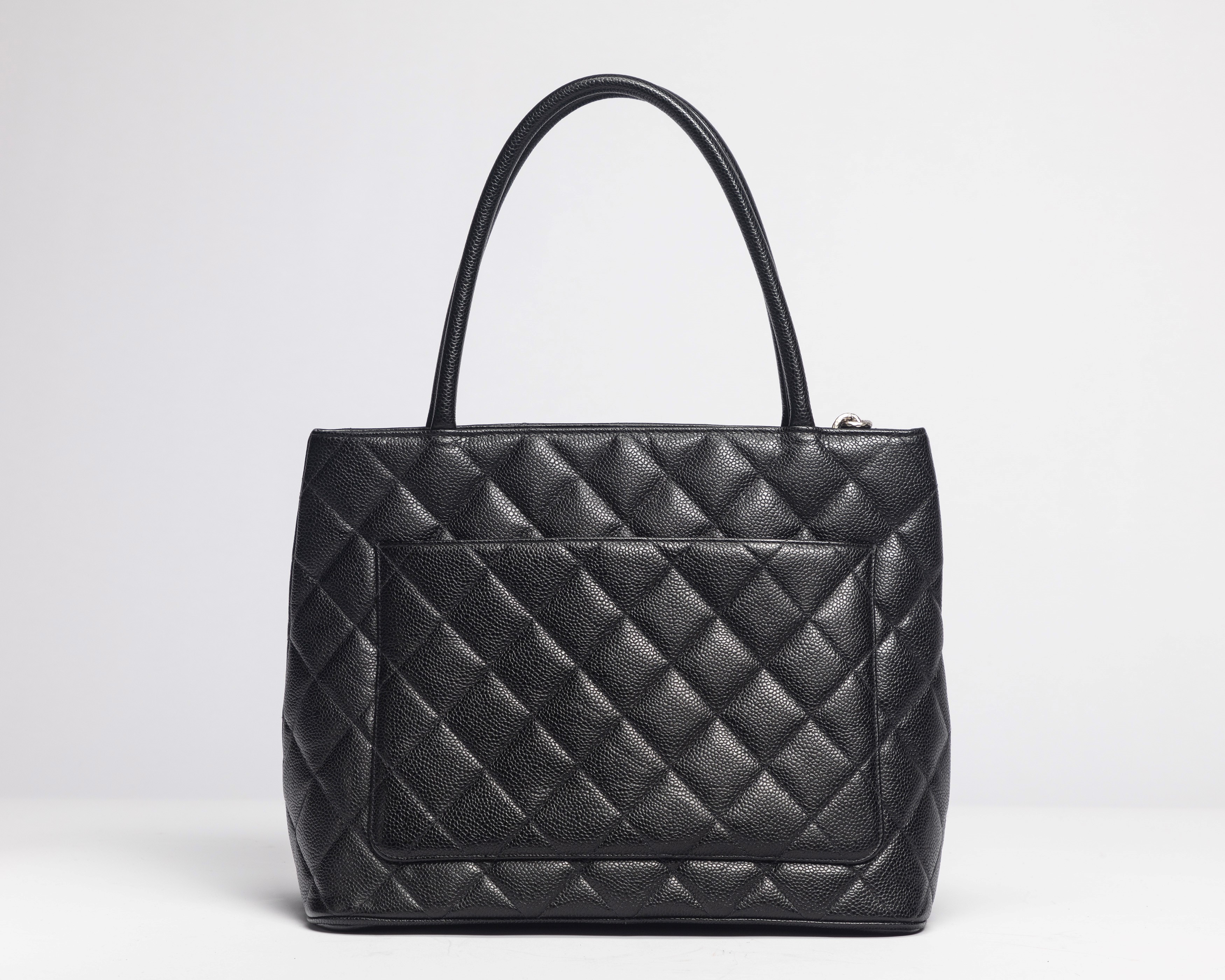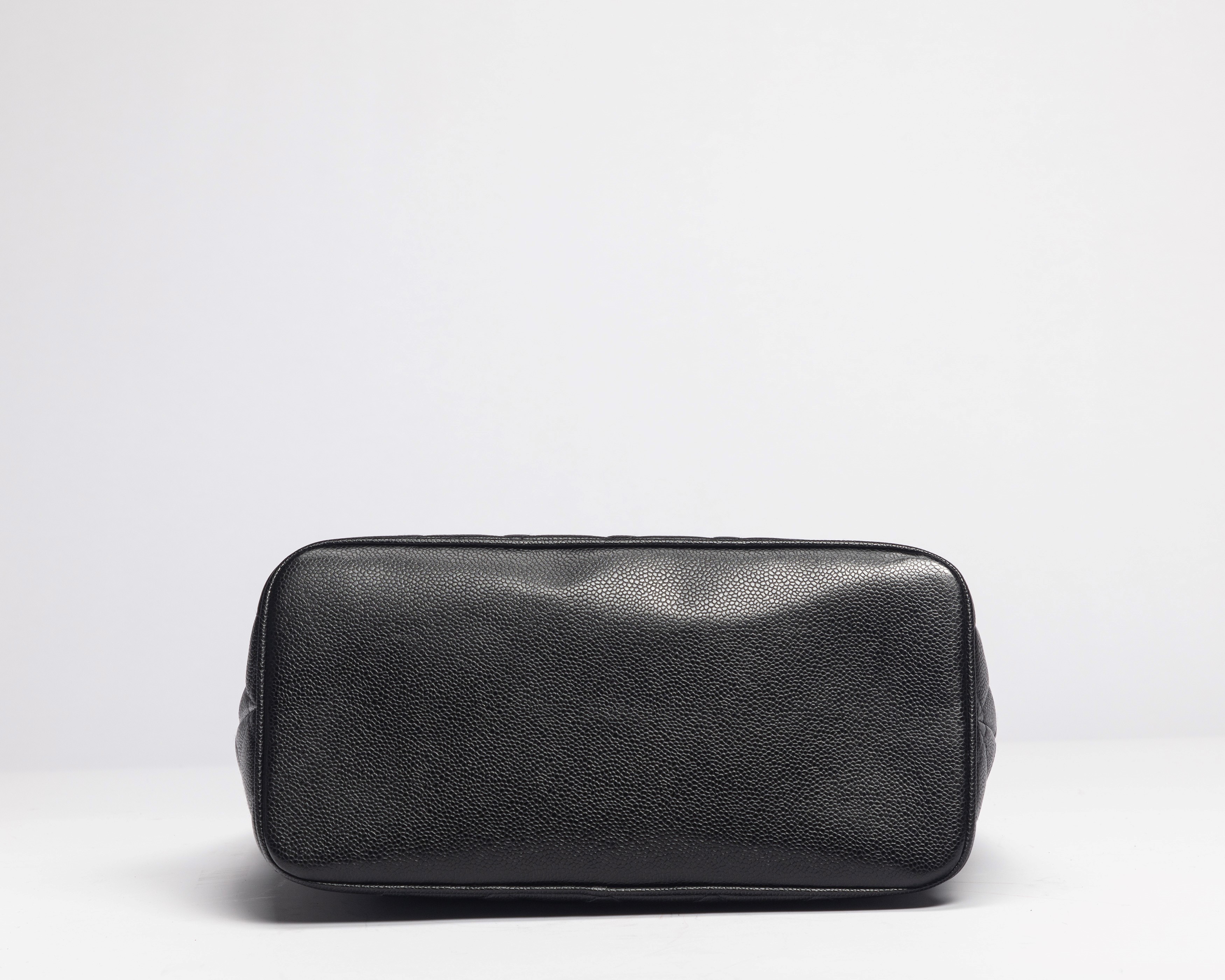 in pelle caviar matelassé color nero, doppi manici, dettagli in metallo satinato, cm 30, con sacchettoBase d'asta