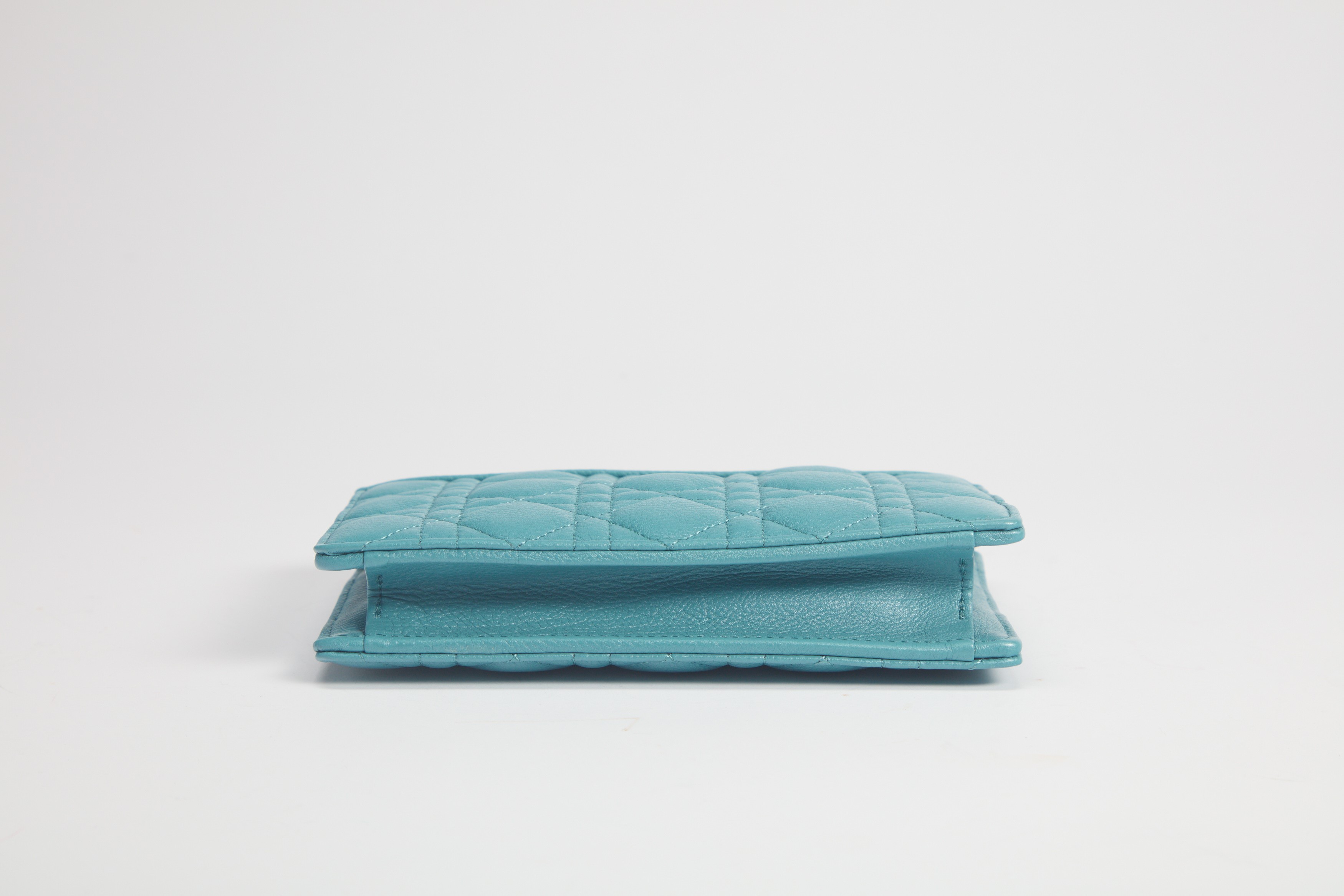 in pelle cannage color Blu Bondi con tracolla a catena staccabile, dettagli in metallo dorato, cm 19, con sacchetto