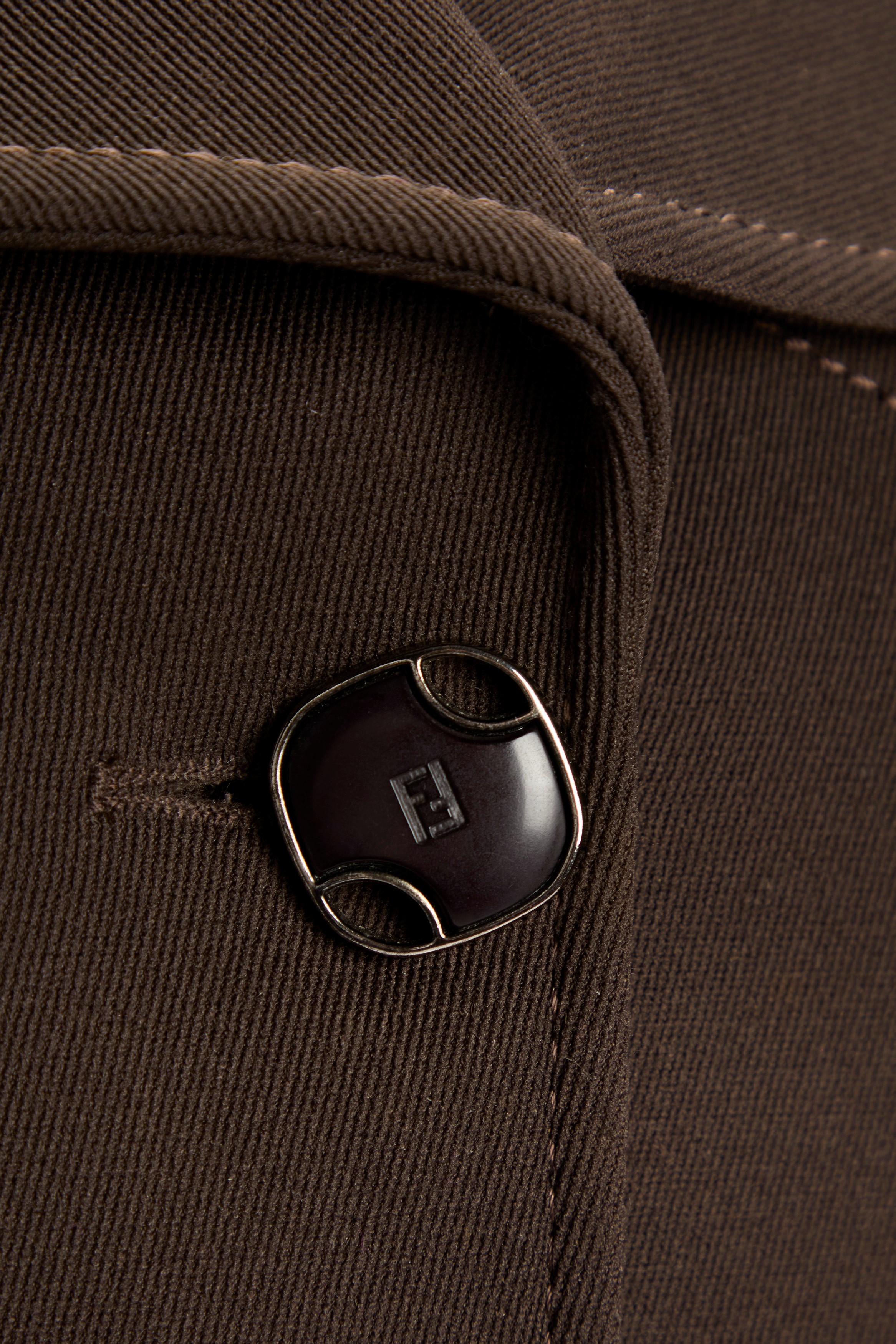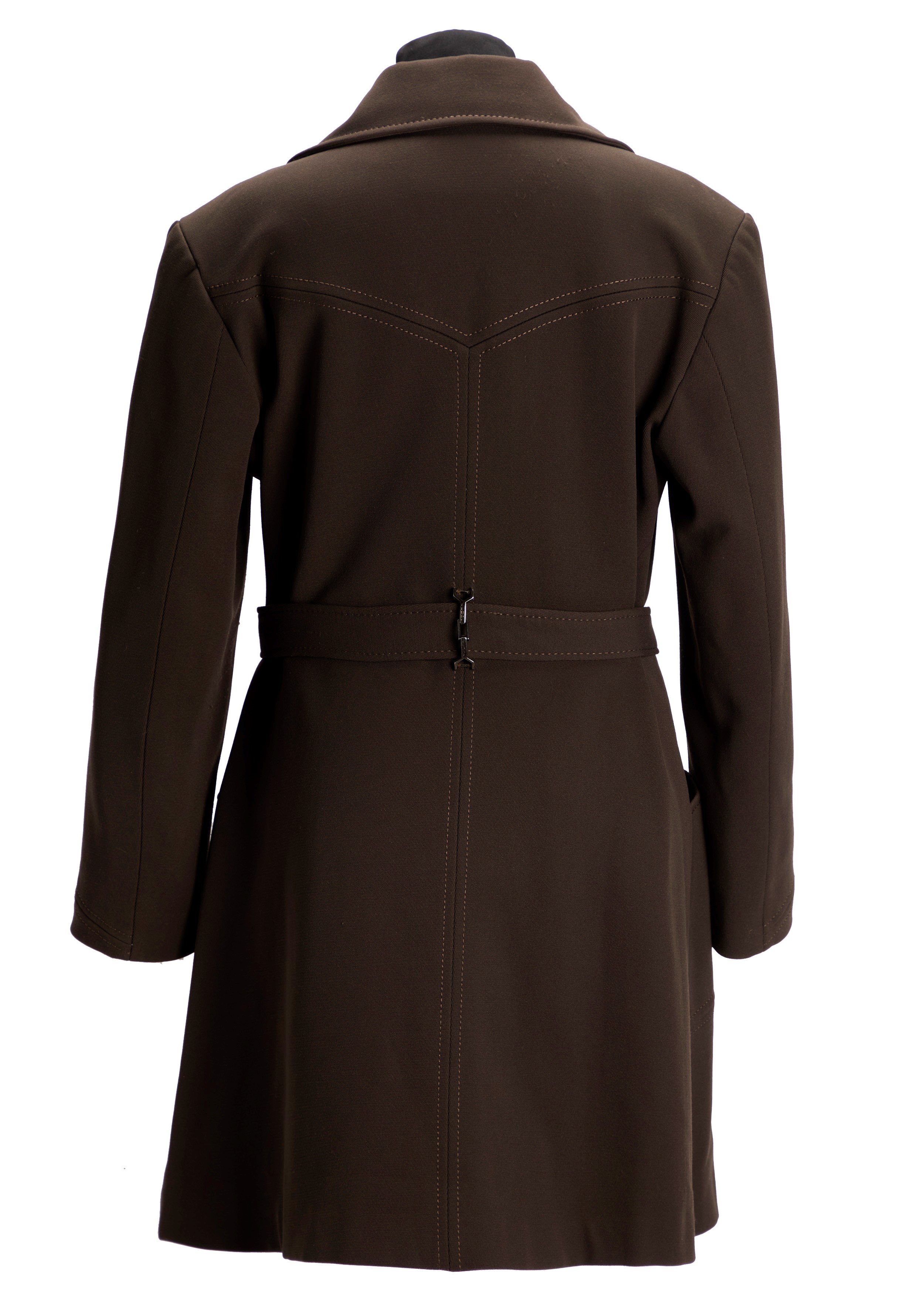 in tessuto misto color testa di moro, bottoni logati, con cintura, tg italiana 42 (lievi difetti)