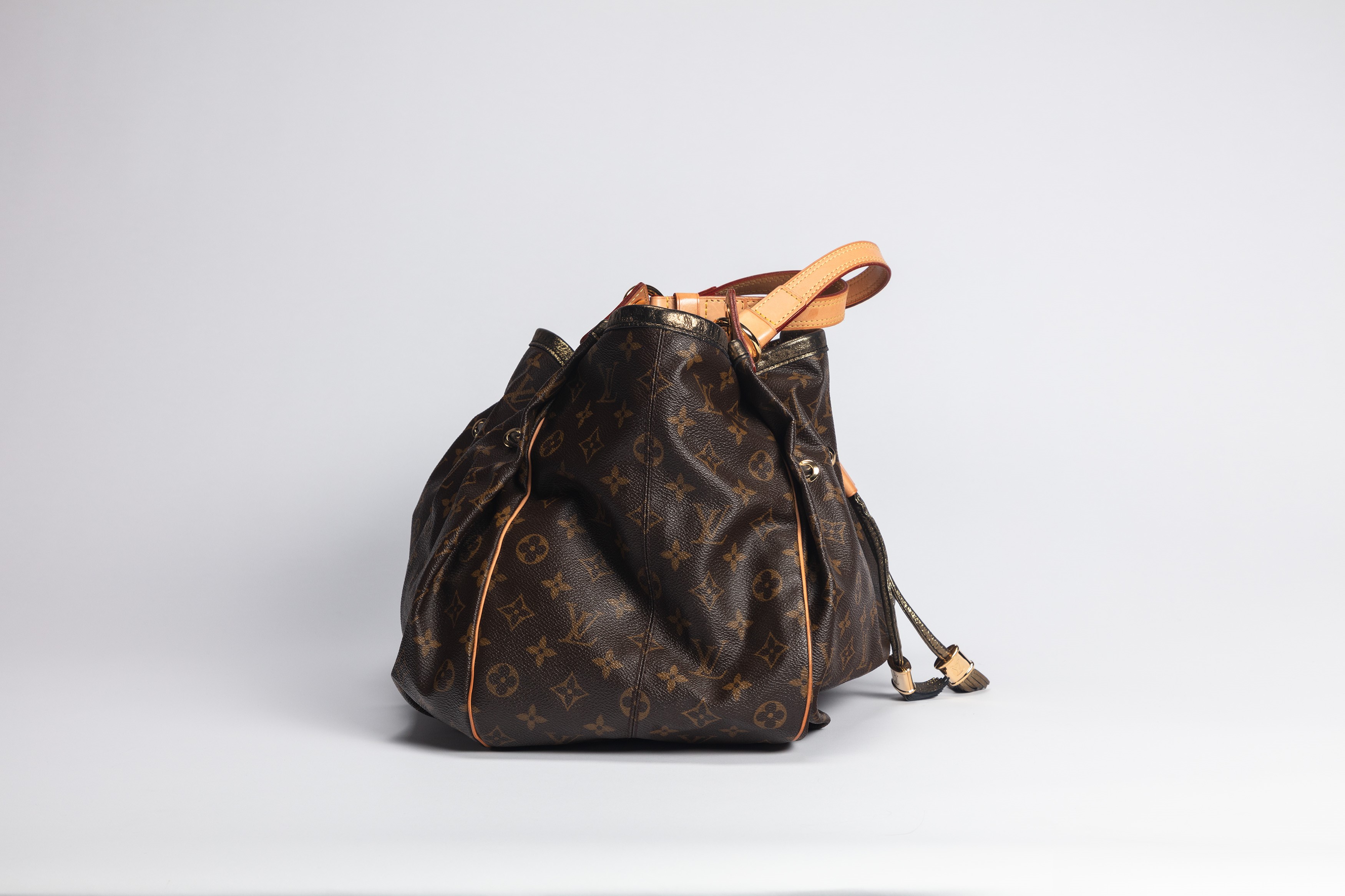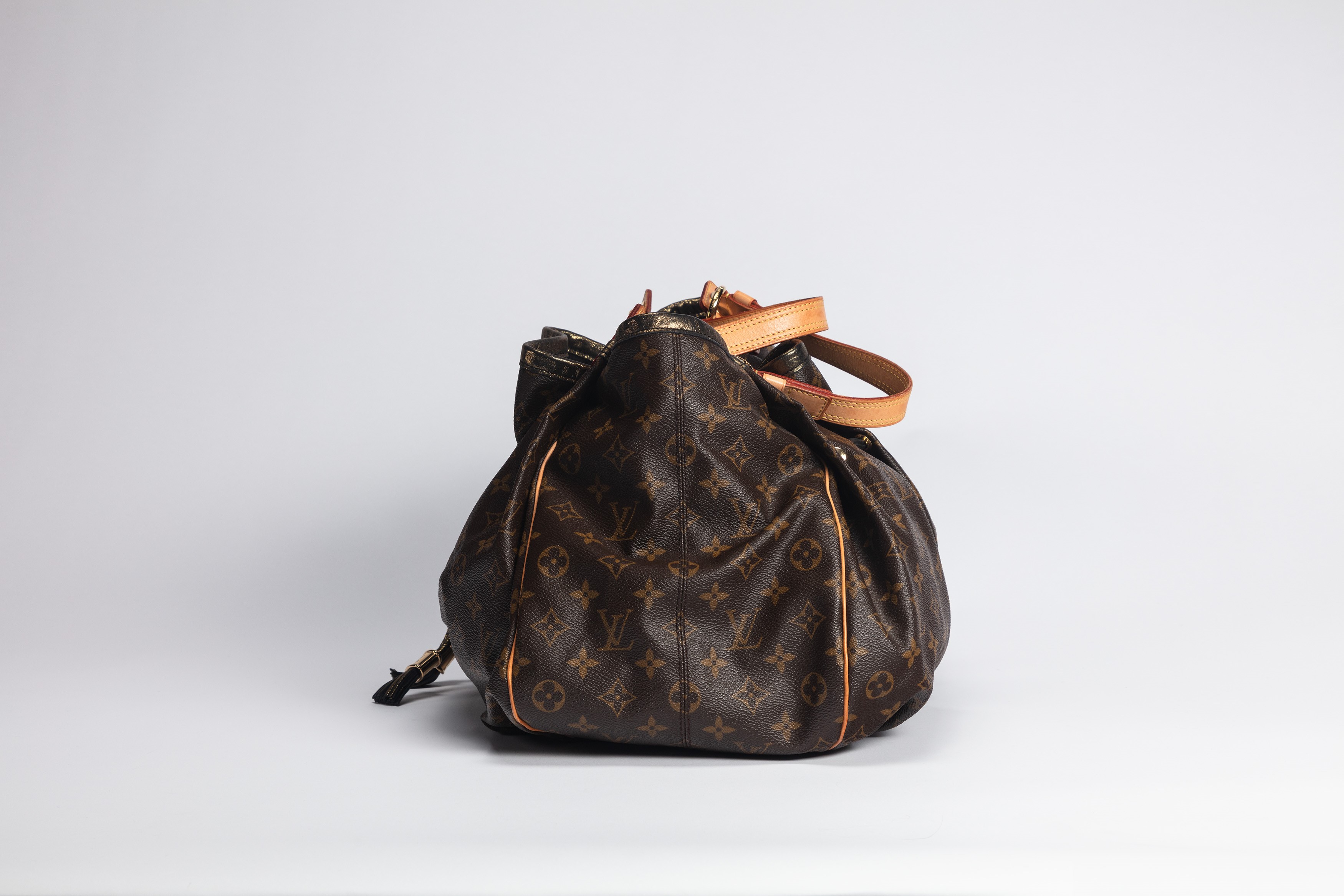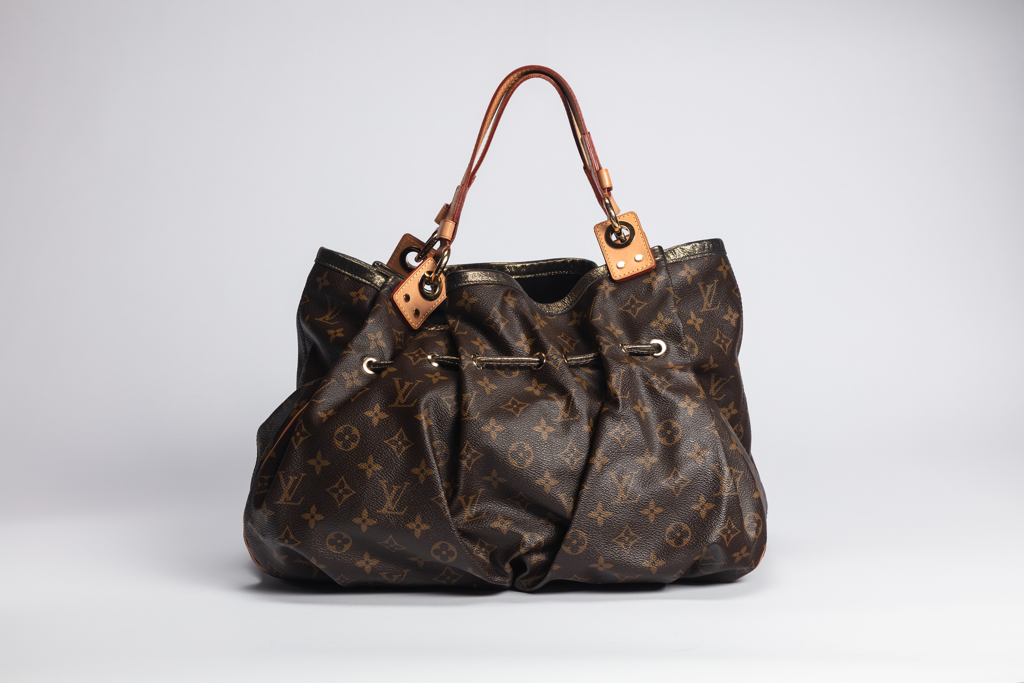 in tela monogram, dettagli in vacchetta e metallo dorato, doppi manici in bacchetta, profili color bronzo, cm 38 (lievissimi difetti)Base d'asta