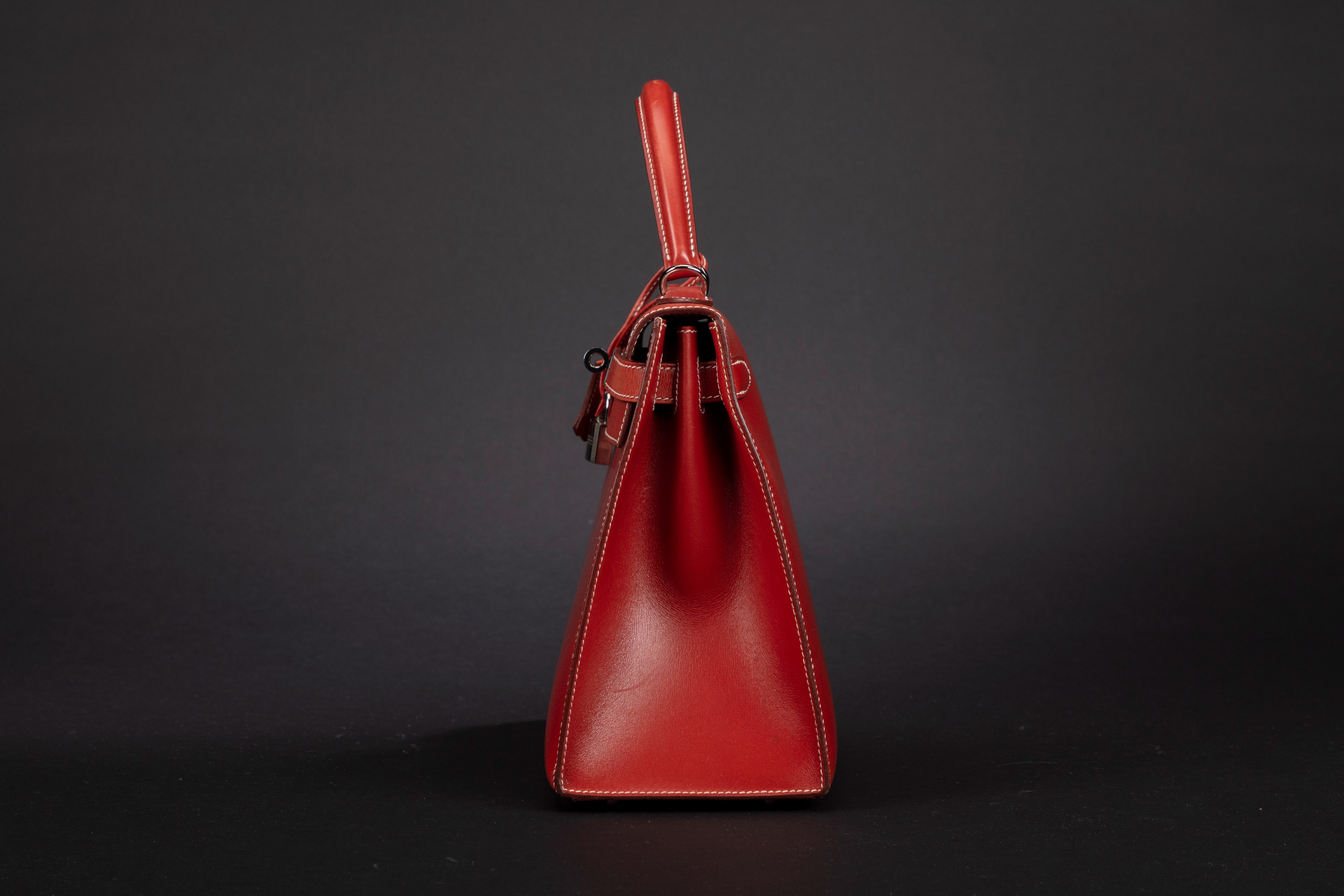 in pelle box color Rouge Duchesse, dettagli in palladio, con tracolla, cm 28, con sacchetto (lievi difetti)Base d'asta