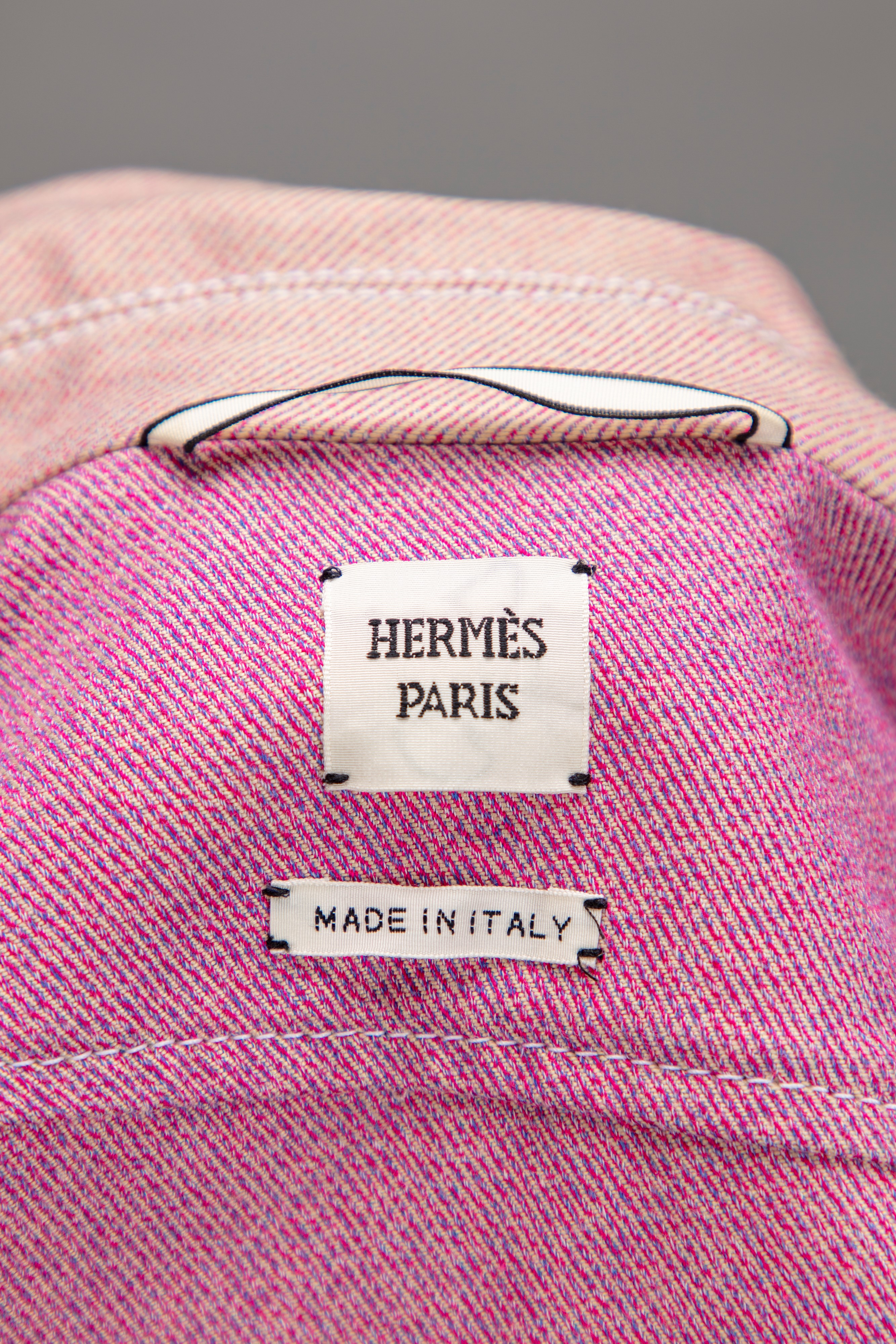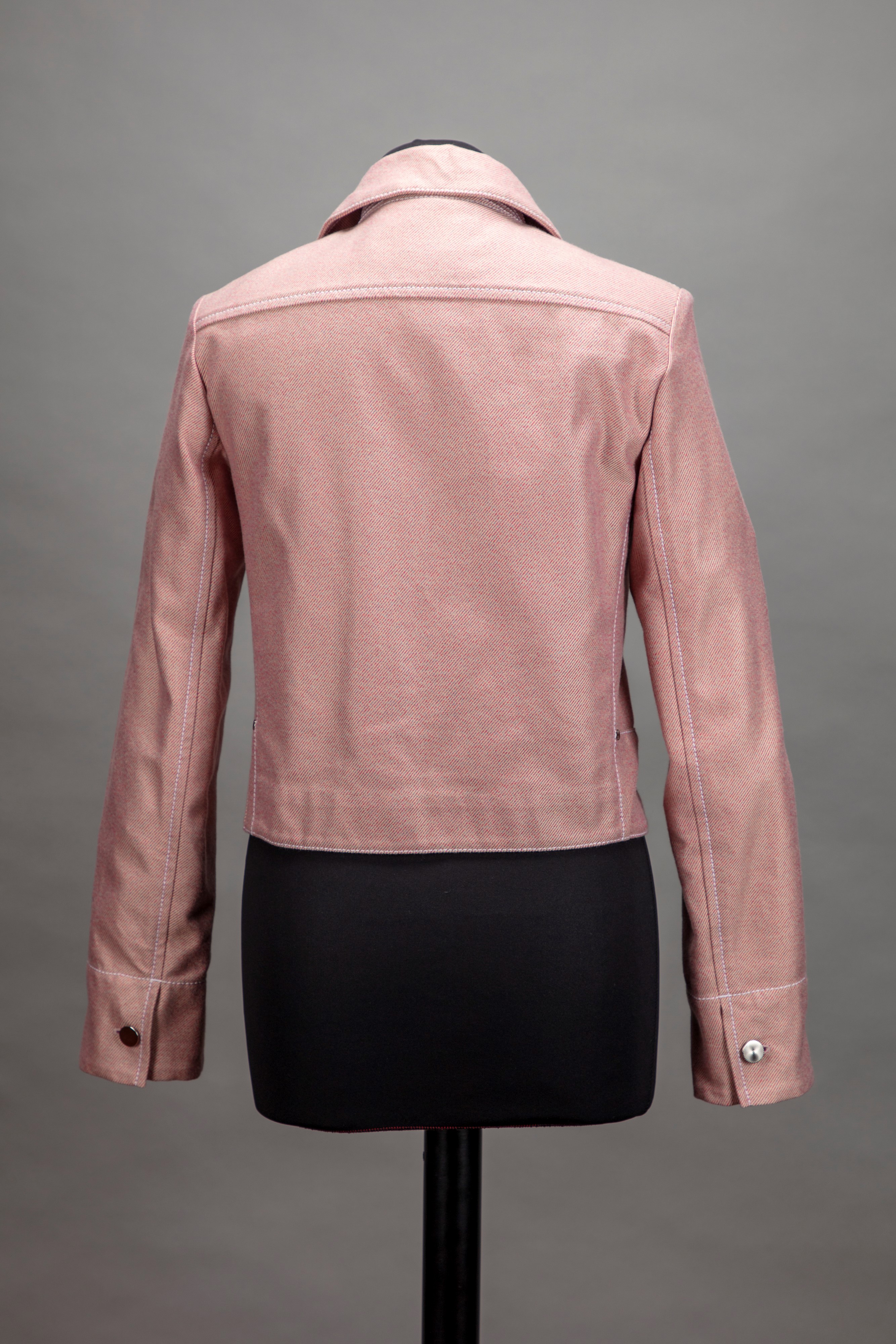 in tela denim in cotone, color rosa melange, chiusura a zip, dettagli in metallo, taglia 36 francese, con custodia