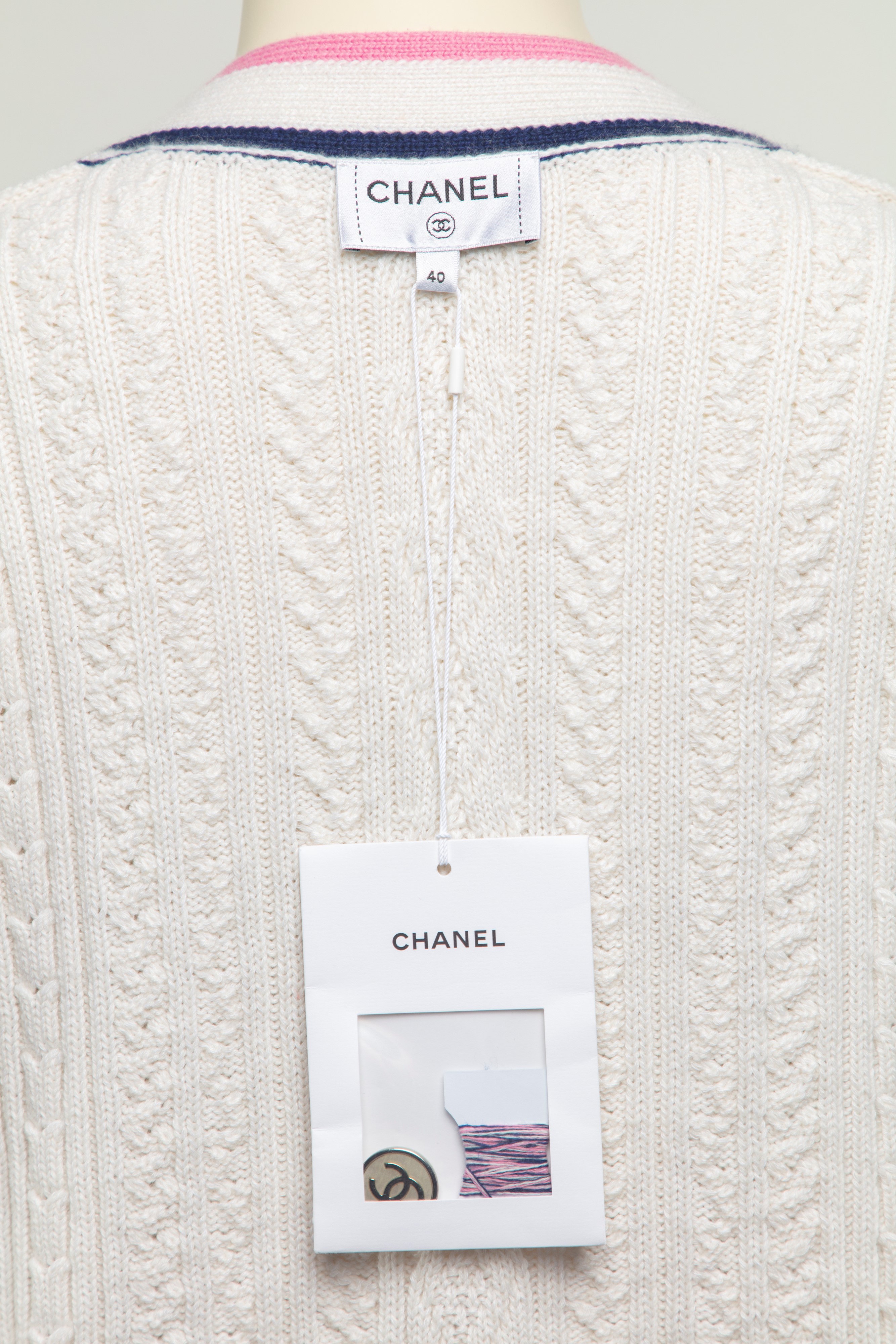 in misto cachemire color bianco, rosa e blu, bottoni logati in metallo, tg 40 franceseBase d'asta