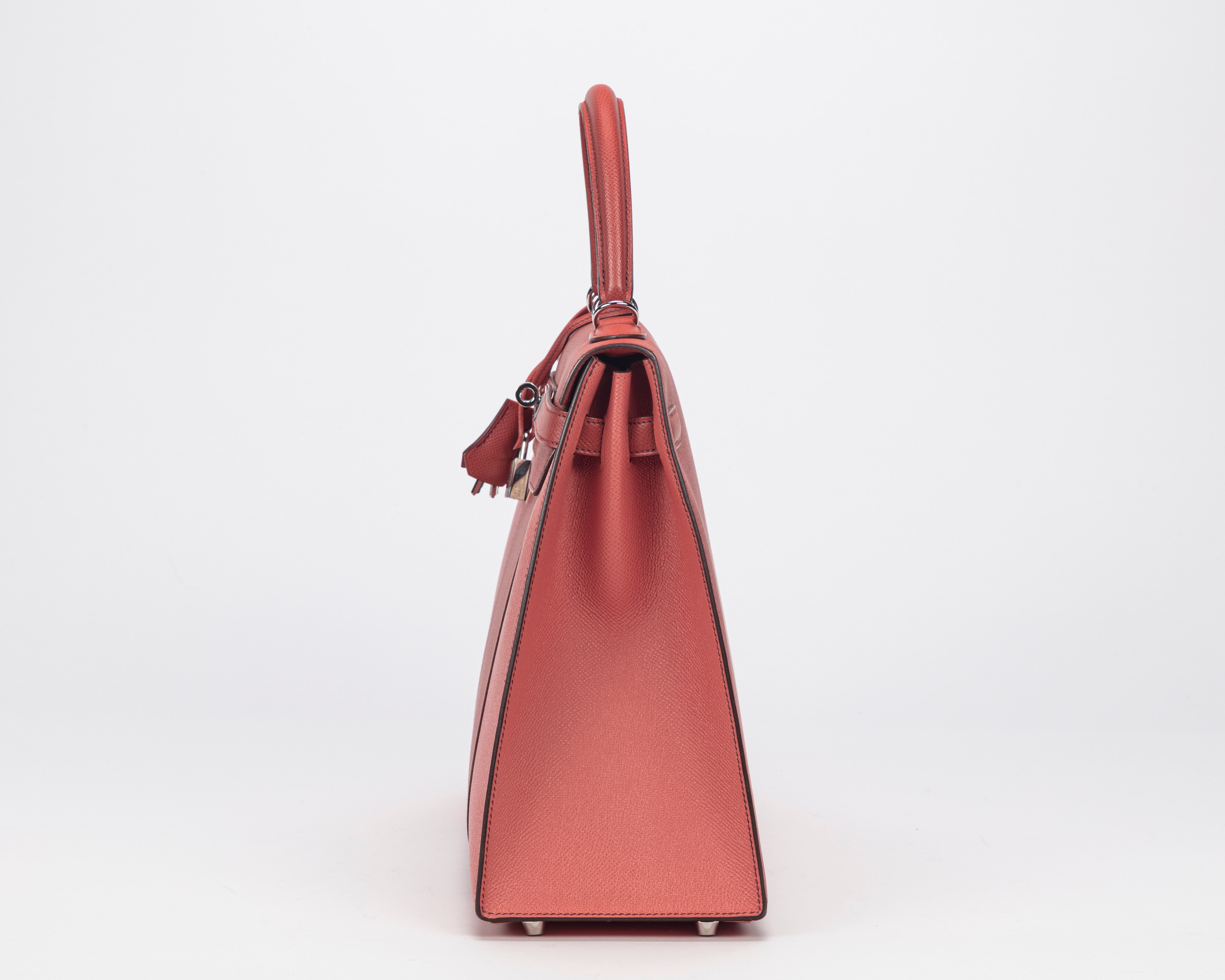 in pelle epsom color flamingo e corallo, dettagli in palladio, con tracolla staccabile, cm 35, con sacchetto e scatola (lievissimi segni d'uso all'interno)Base d'asta