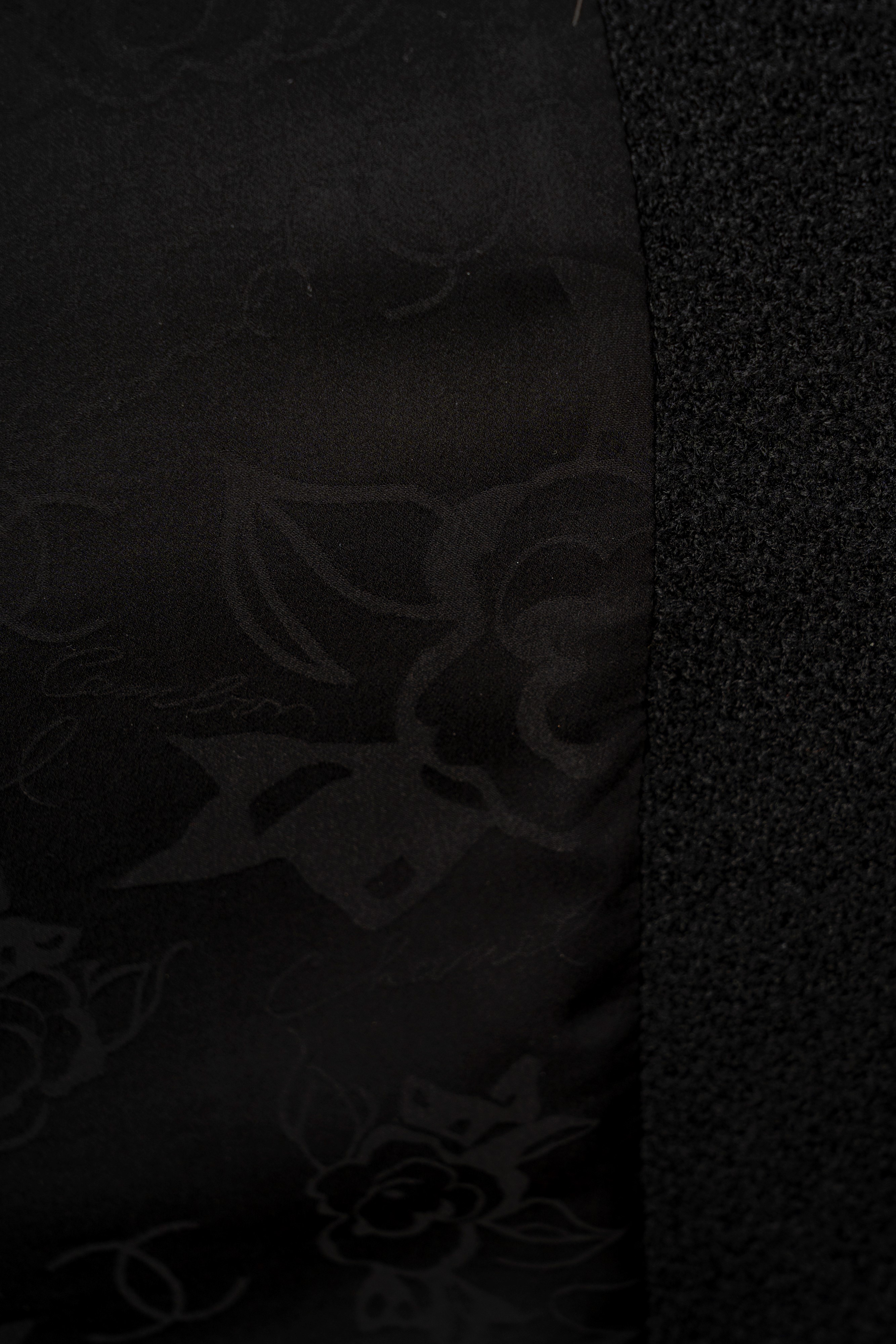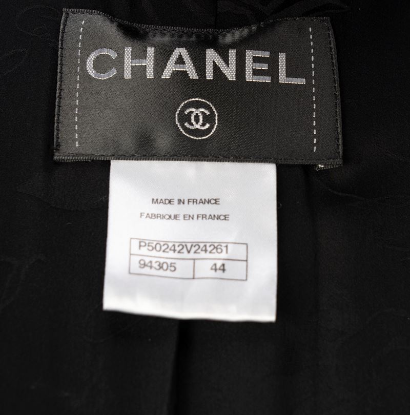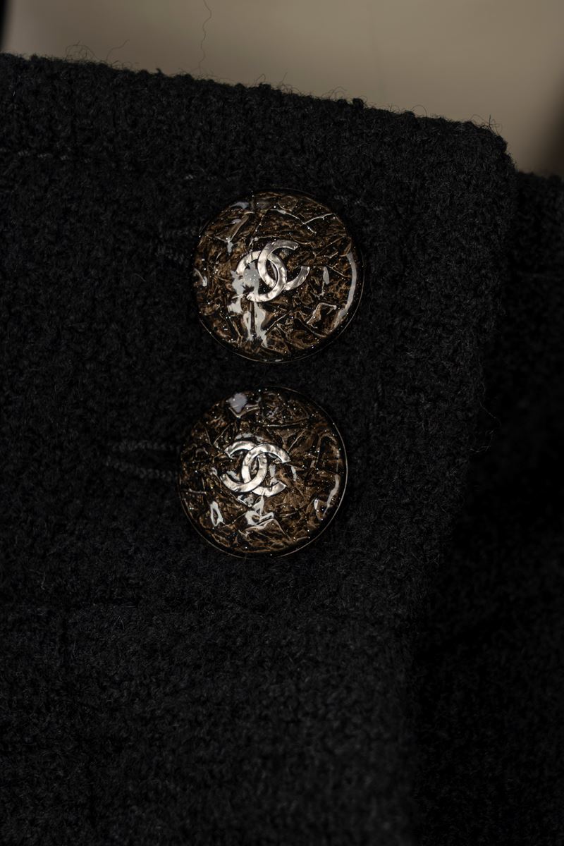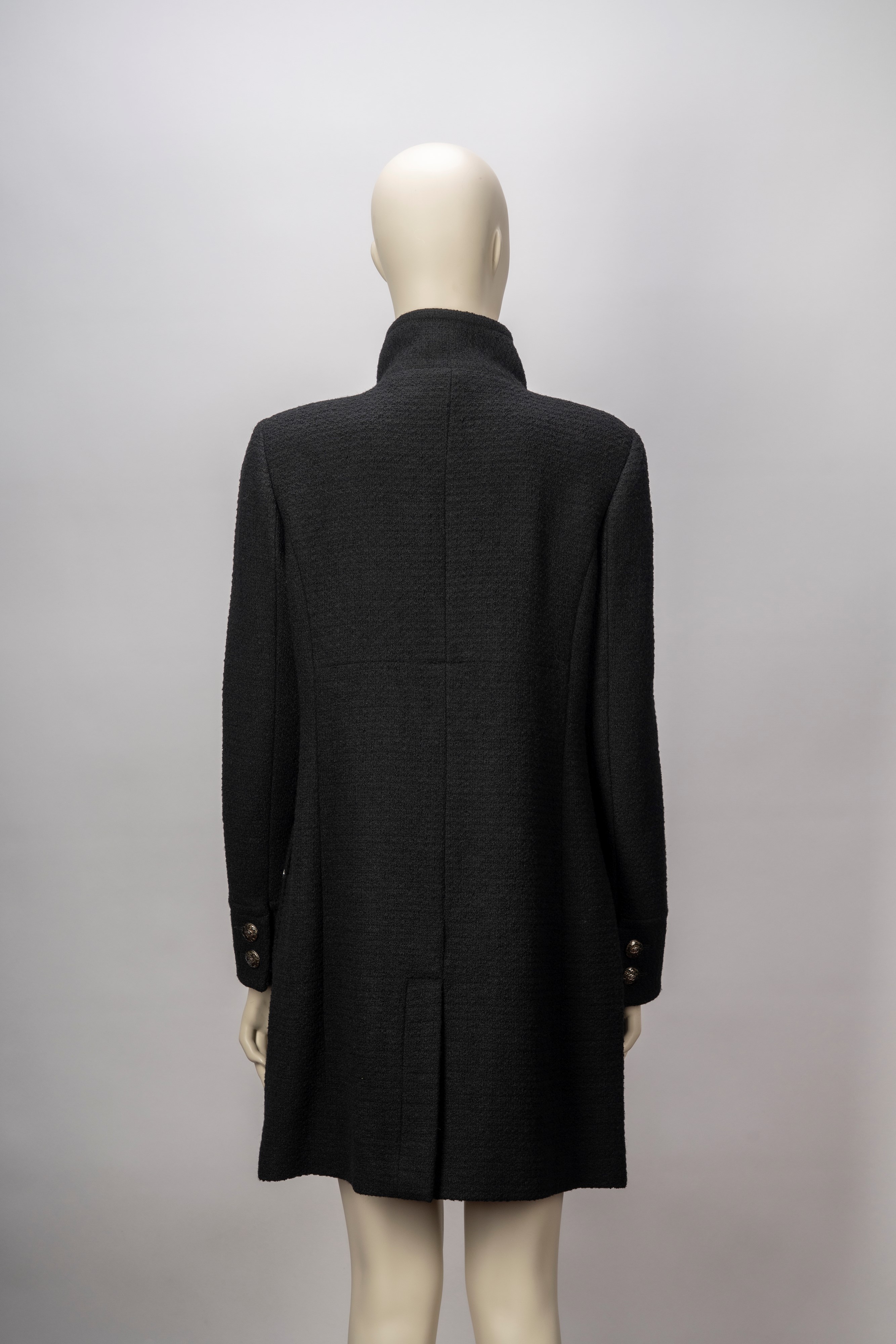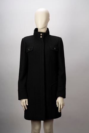 in lana bouclé color nero e fodera in seta, bottoni bijoux in metallo smaltato, taglia francese 44