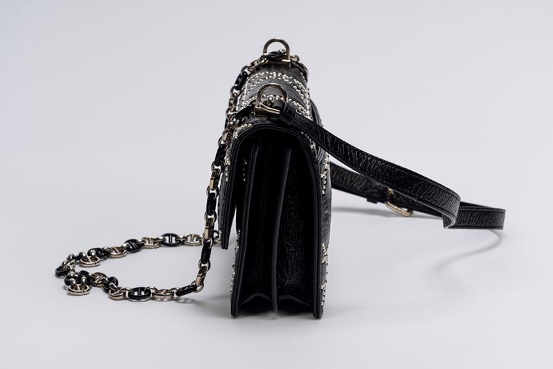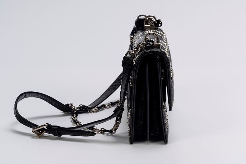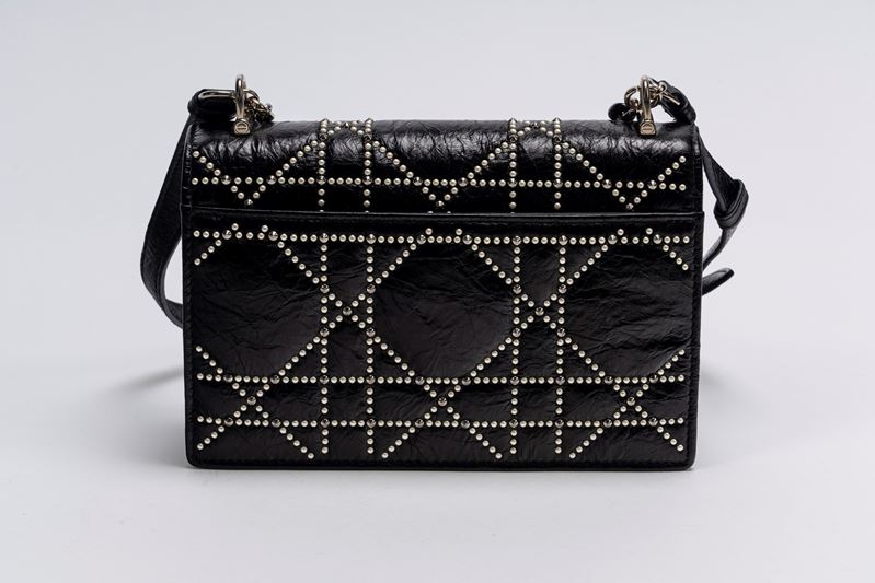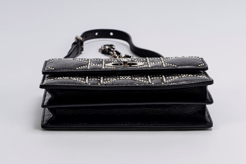 in pelle cannage, con micro perle fancy, dettagli in metallo, tracolla a catena bicolore, cm 19, con sacchettoBase d'asta