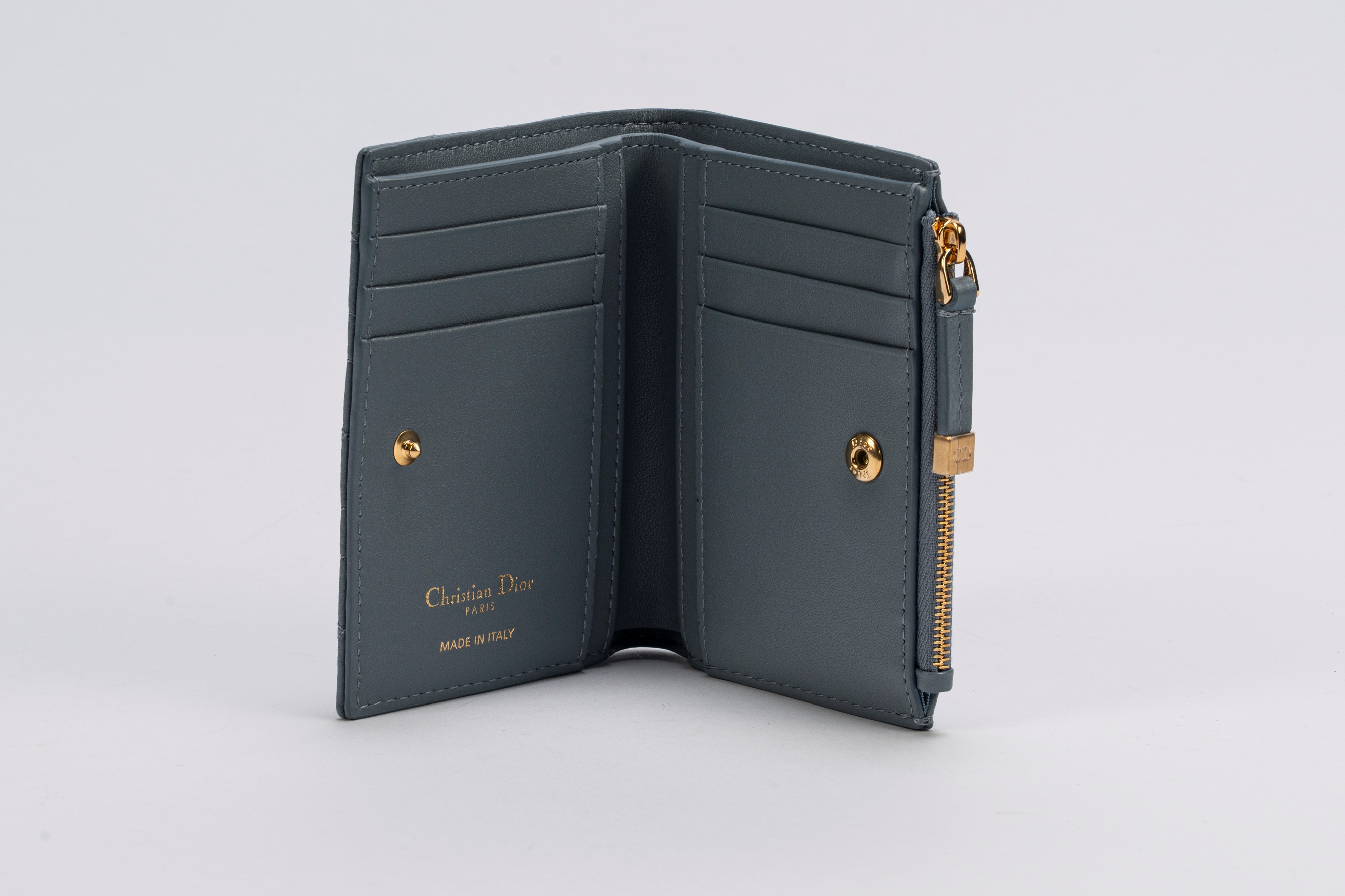 in pelle cannage color blu, dettagli in metallo dorato, cm 12, con sacchetto