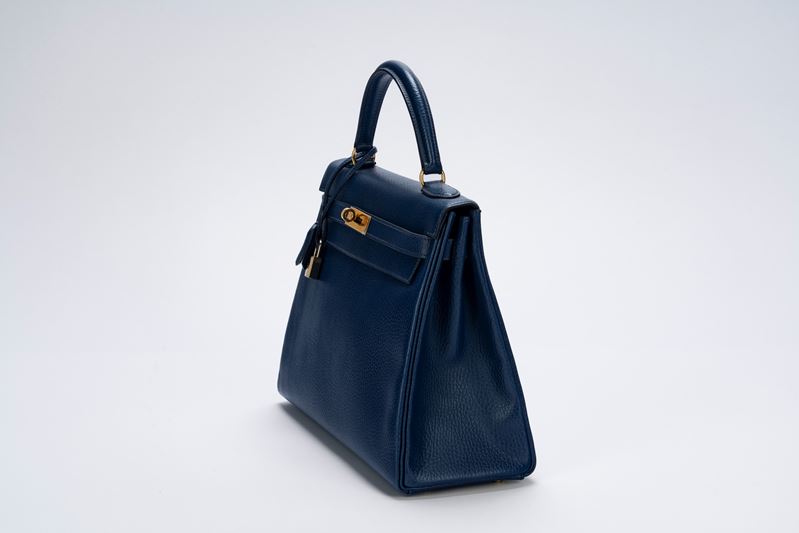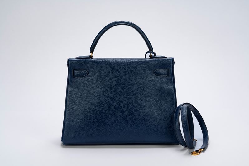 in pelle Togo color Blue Cobalte, dettagli in metallo dorato, con tracolla staccabile, cm 32, con sacchetto (lievissimi segni d'uso)Base d'asta