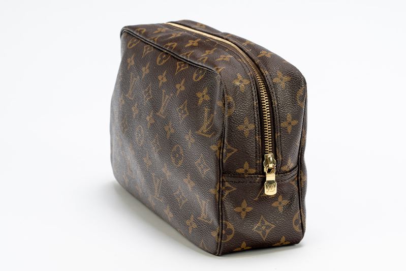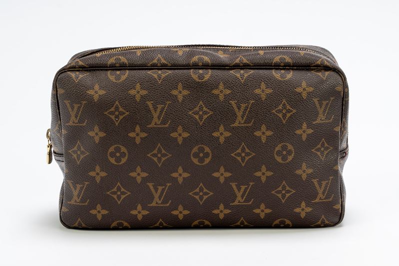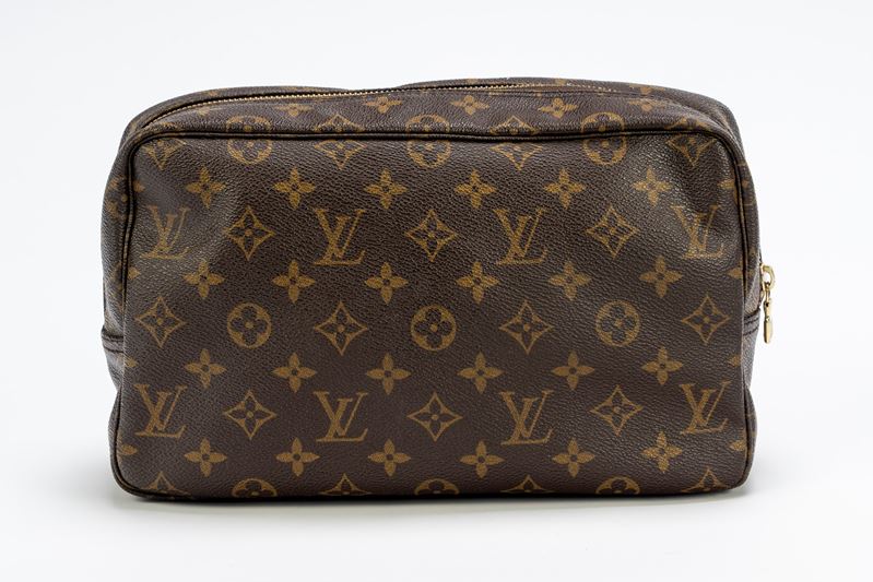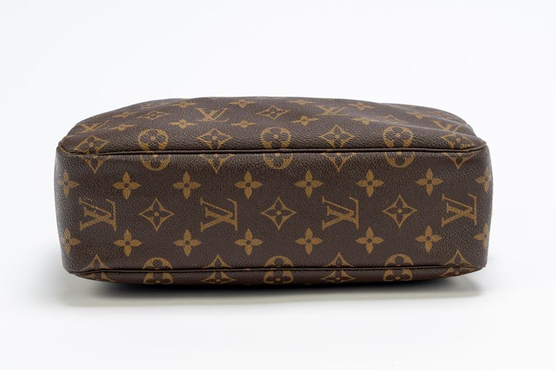 in tela monogram, chiusura a cerniera, dettagli in metallo dorato, cm 27 (segni d'uso)Base d'asta