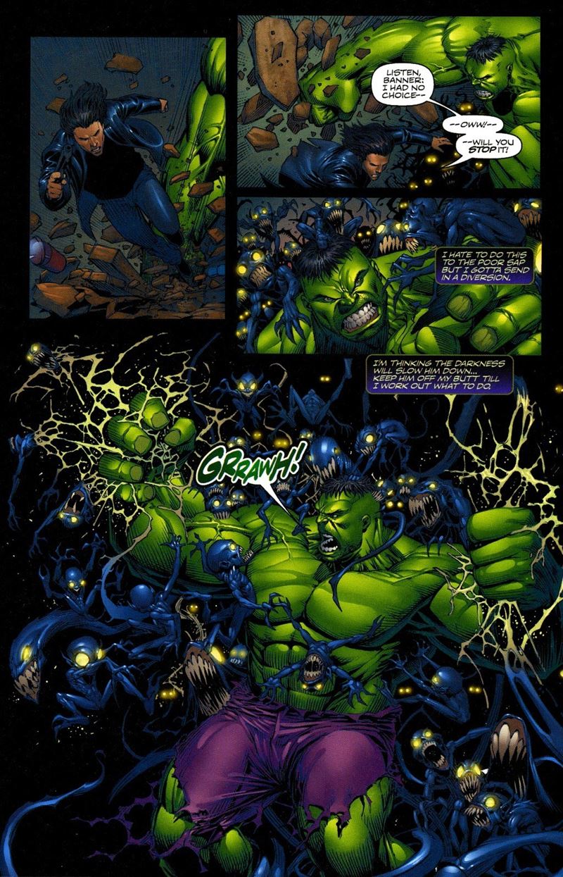 Tavola originale realizzata da Keown per il volume "The Darkness Vs The Incredible Hulk", edita a pag. 14 dalla Image Comics nel 2004. Firmata e datata.