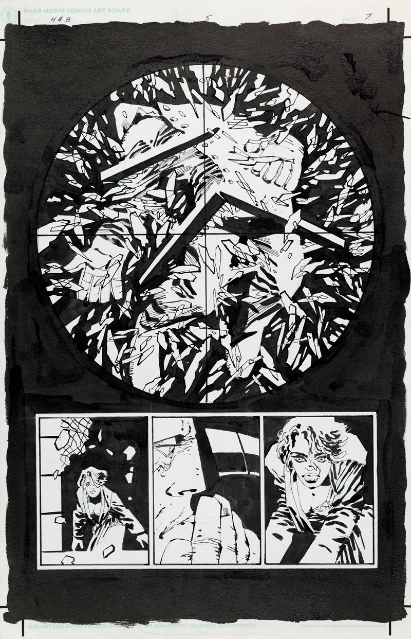 Tavola originale realizzata da Miller per il quinto numero della miniserie "Sin City - Hell and Back", edita a pag. 7 dalla Dark Horse nel 1999. Una splash page da mozzare il fiato, potente e dinamica come solo Miller sa costruire, un mix geniale e unico di violenza dark e raffinatezza noir.