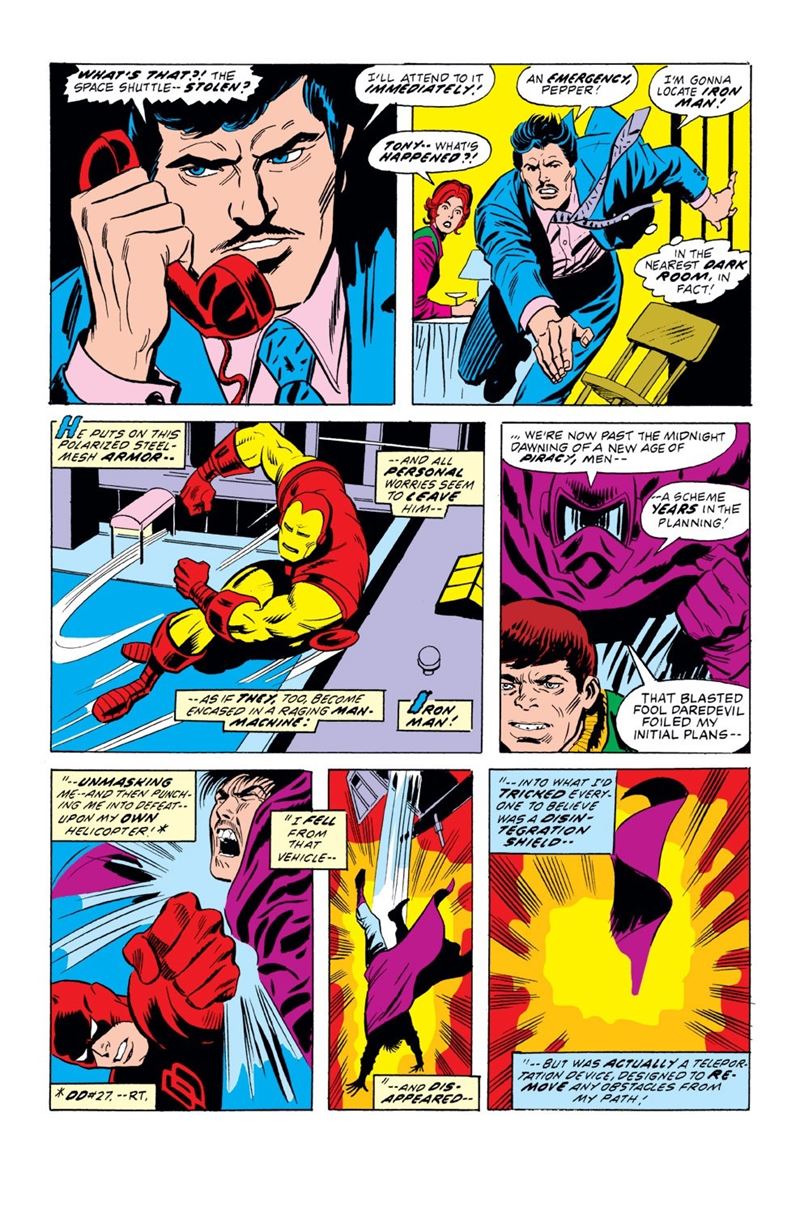 Tavola originale realizzata da Tuska per "Cry Marauder!", edita su Iron Man n. 60 a pag. 15 dalla Marvel nel 1973. Lievi pieghe al margine sinistro.