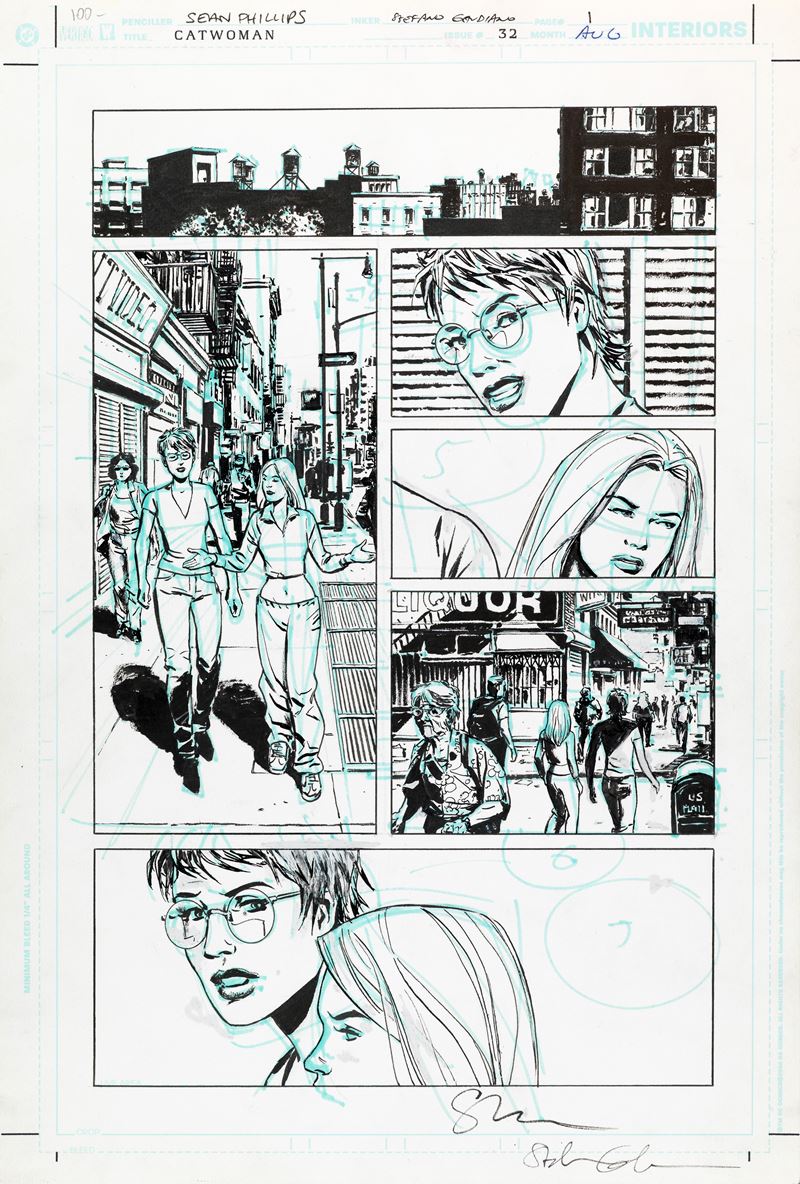 Tavola originale realizzata da Phillips per "Only Takes a Night", edita su Catwoman n. 32 a pag. 1 dalla DC nel 2004. Firmata.
