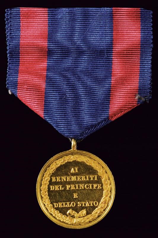 Rarissima medaglia ai benemerenti del principe e dello stato; in oro. Al dritto busto verso sinistra attorniato dall'iscrizione: "M. LVIG. ARCID. D'AUVSTR. DVCH. DI PARM. PIAC. E GVAST." Al rovescio, entro un serto di quercia ed alloro, la legenda "AI BEN