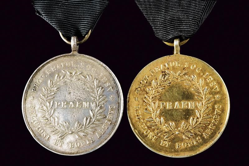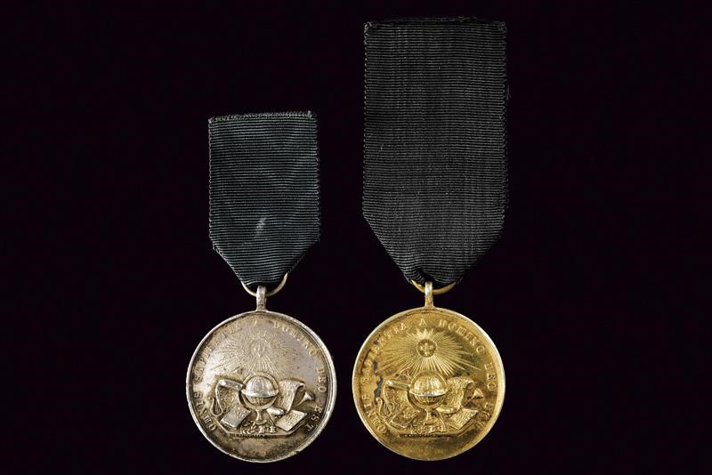 Una in metallo bianco e una in metallo dorato. Con nastro.