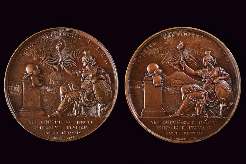 Lotto di due medaglie per il VII congresso degli scienziati a Napoli, Ferdinando II (1830-59), 1845