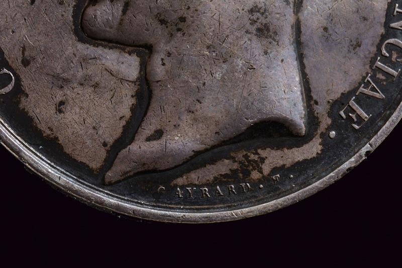 In argento. Al dritto busto verso sinistra, all bordo "CAROLVS X /REX FRANCIAE". Al rovescio dedica.