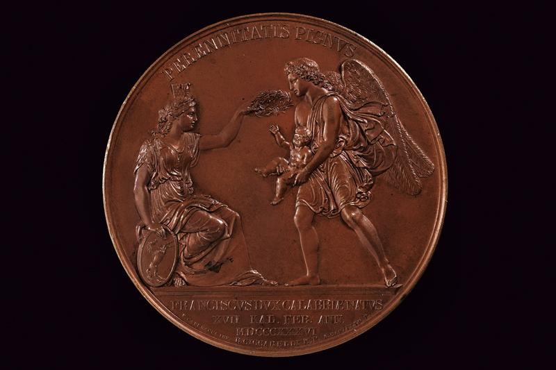 Medaglia per la nascita del Duca di Calabria Francesco di Borbone, Ferdinando II (1830-59), 1836