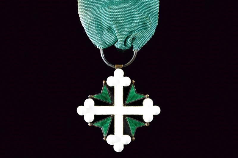 Croce da cavaliere dell'ordine dei Santi Maurizio e Lazzaro; in metallo con smalti (mancanze); con nastro.