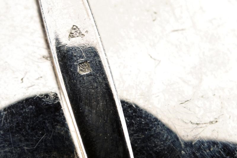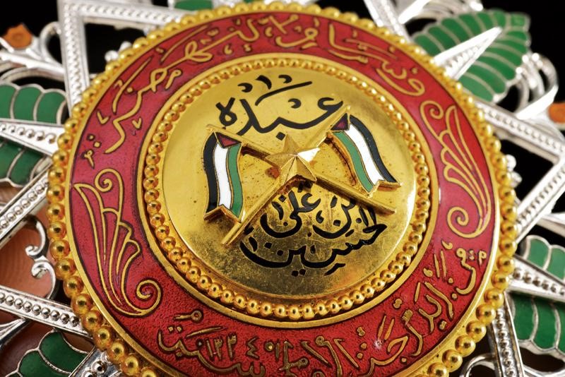 Placca di gran croce in metallo bianco, parzialmente dorato e smaltato. Sul retro spilla verticale con due punzoni.